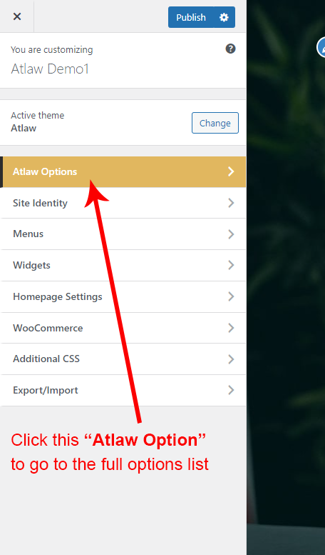 Now click on the Atlaw Options and you will see lot's of options for different theme sections.