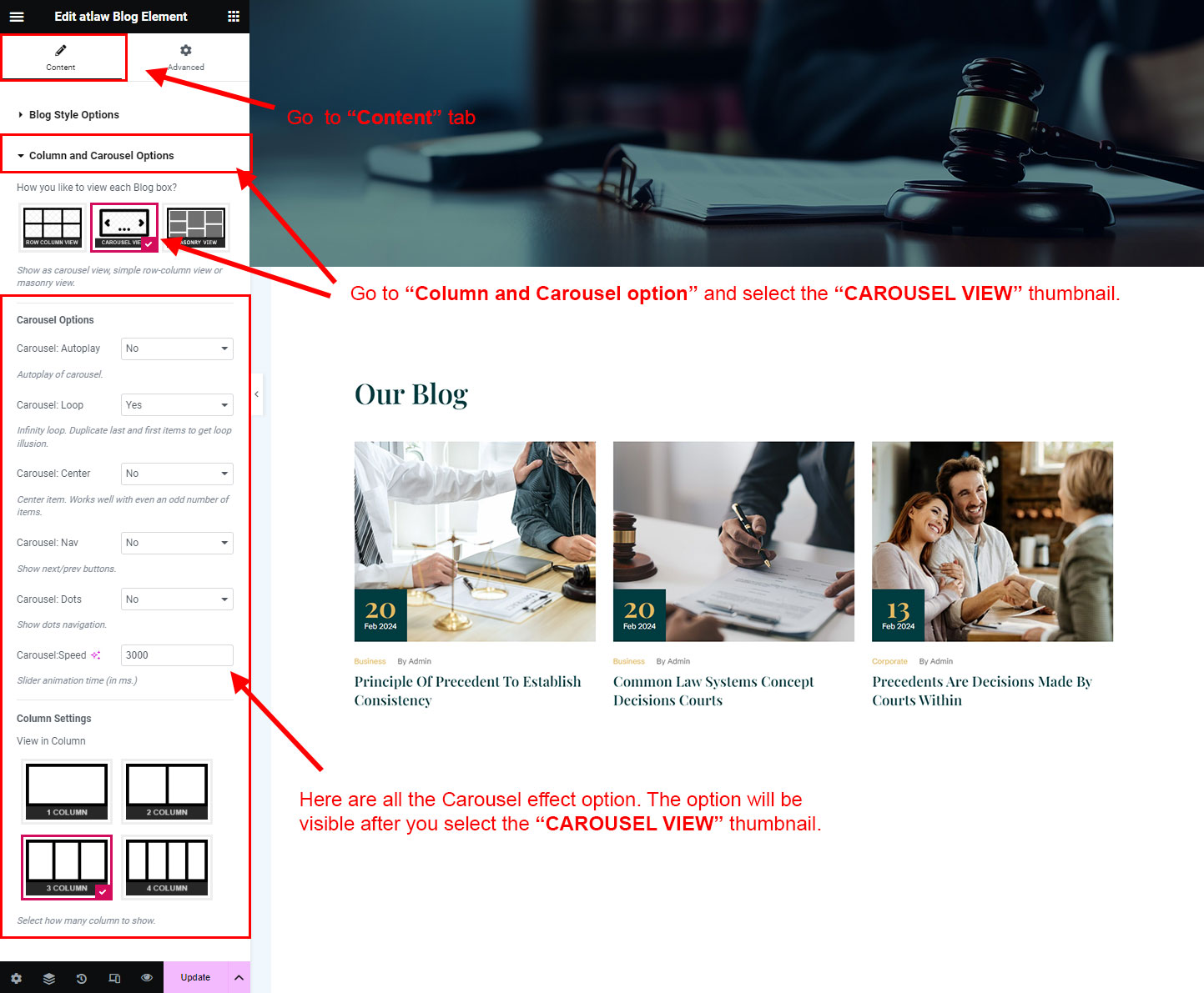 You can select the post options here. Like how many posts you like to show, show posts from selected category, post order etc.