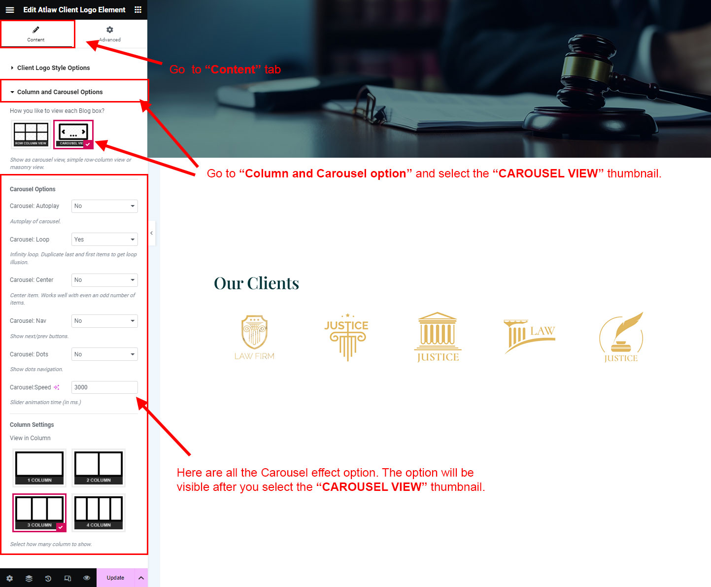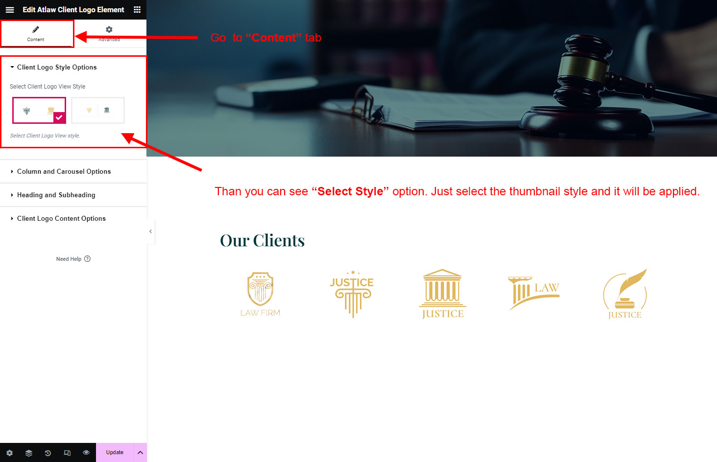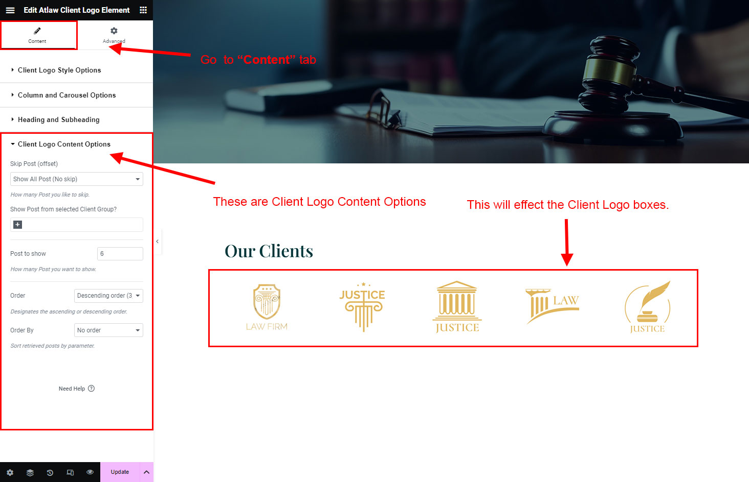 You can select the client-logo options here. Like how many client-logo you like to show, show client-logo from selected group (category), client-logo order etc.