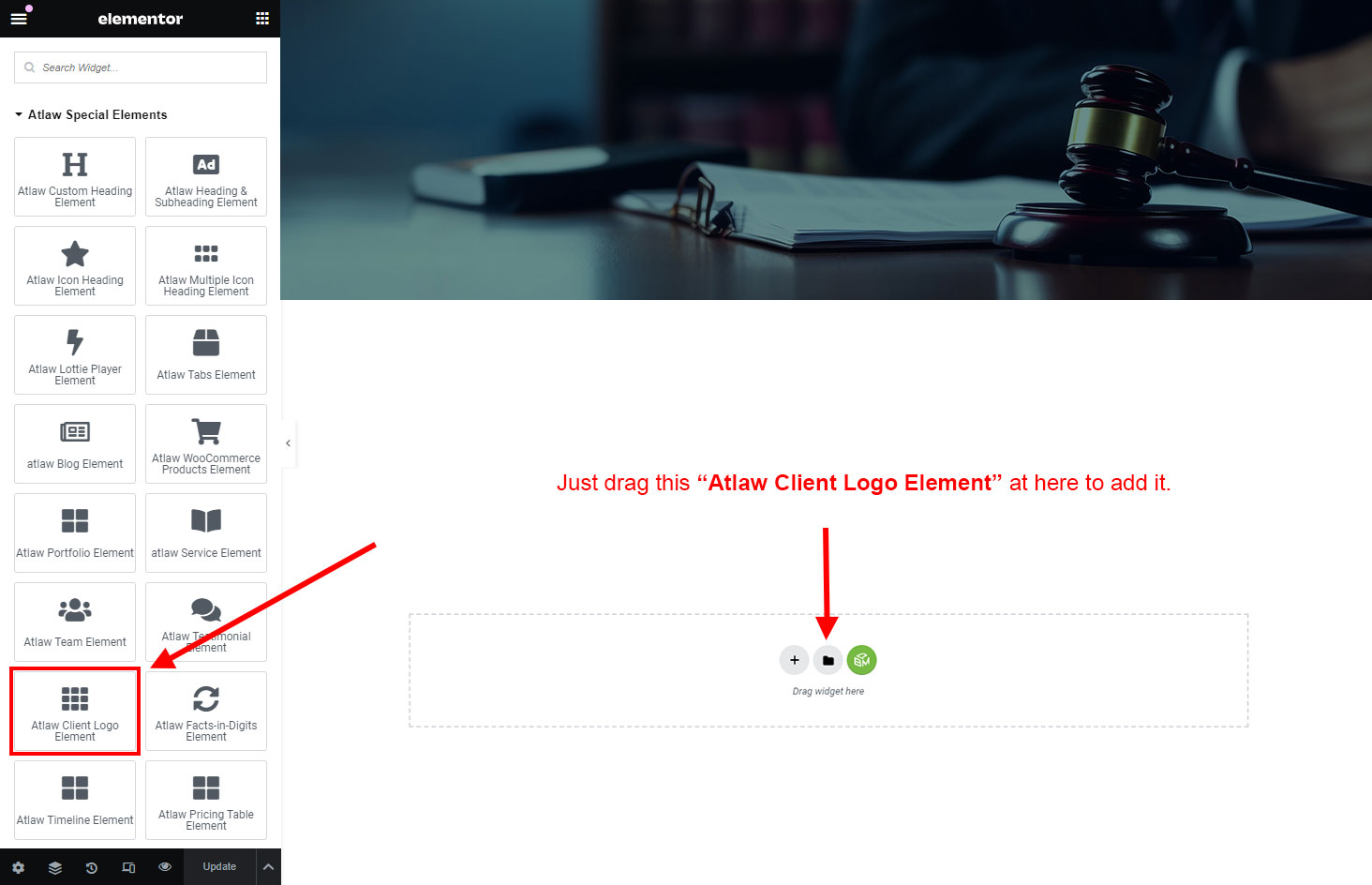 Now we have some Client Logo posts. So we can show all Client Logo on a page. Create a new page and add Atlaw Client Logo Element on a page by dragging it.