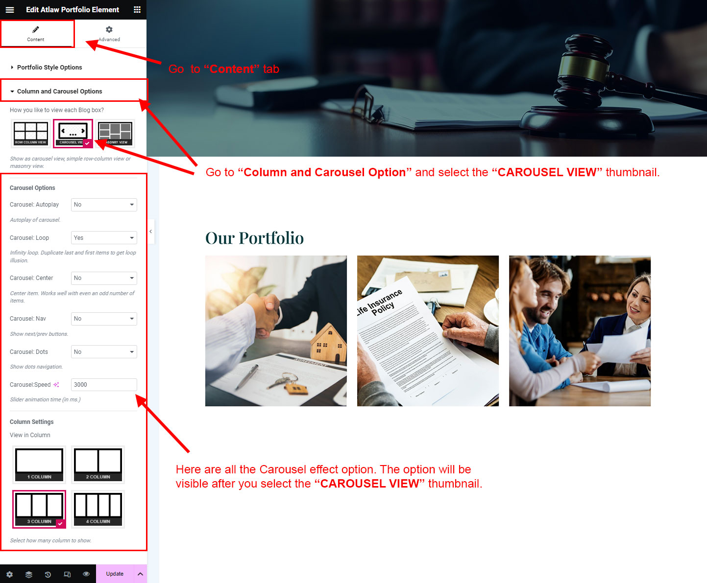 You can select the portfolio options here. Like how many portfolio you like to show, show portfolio from selected category, portfolio order etc.
