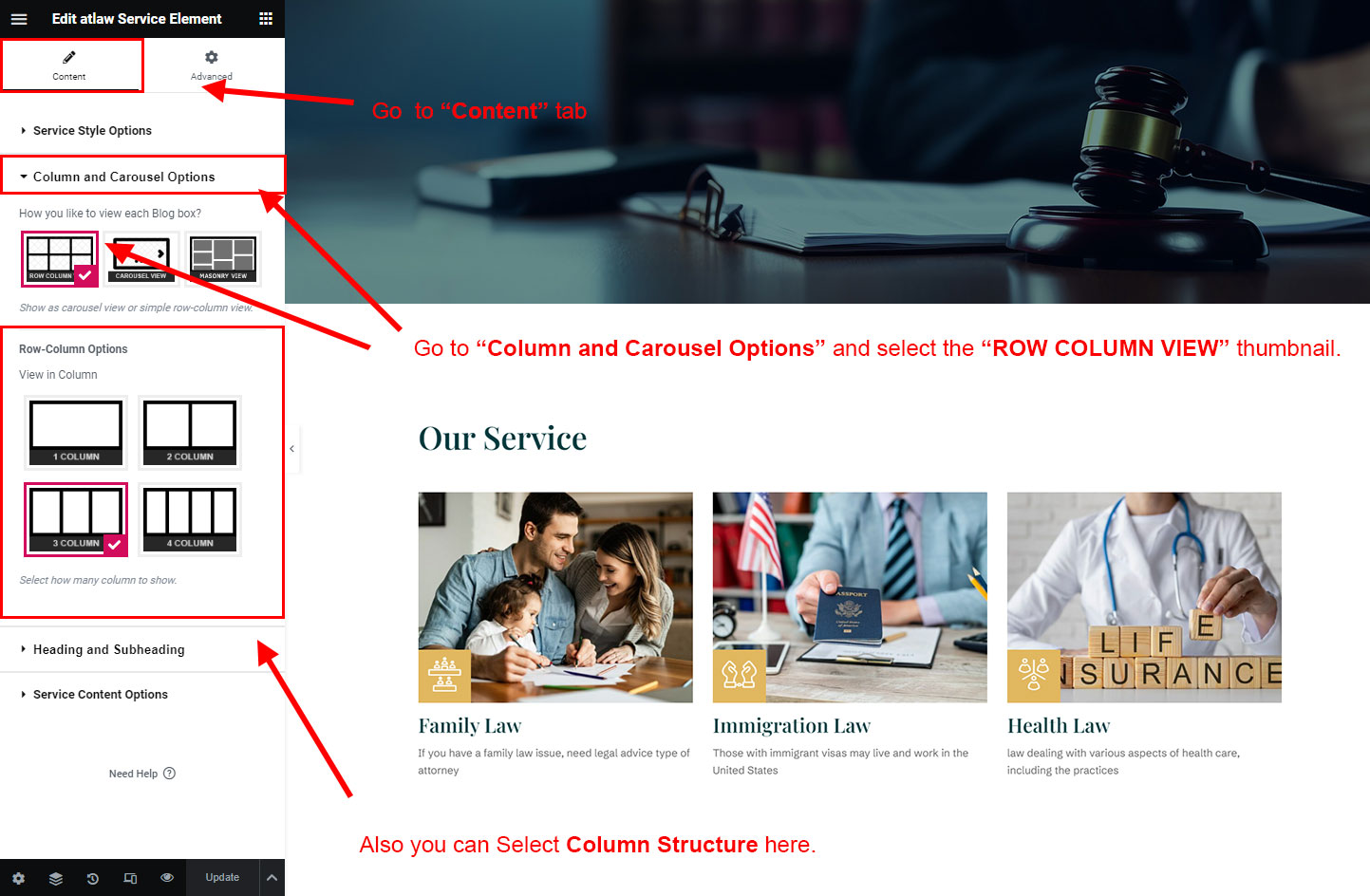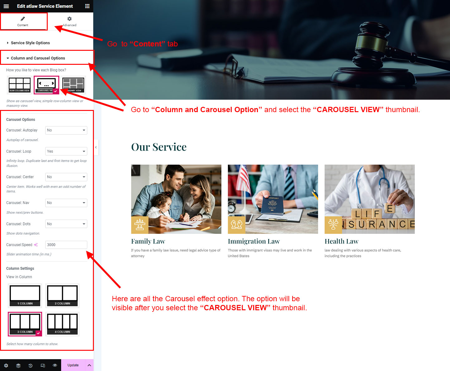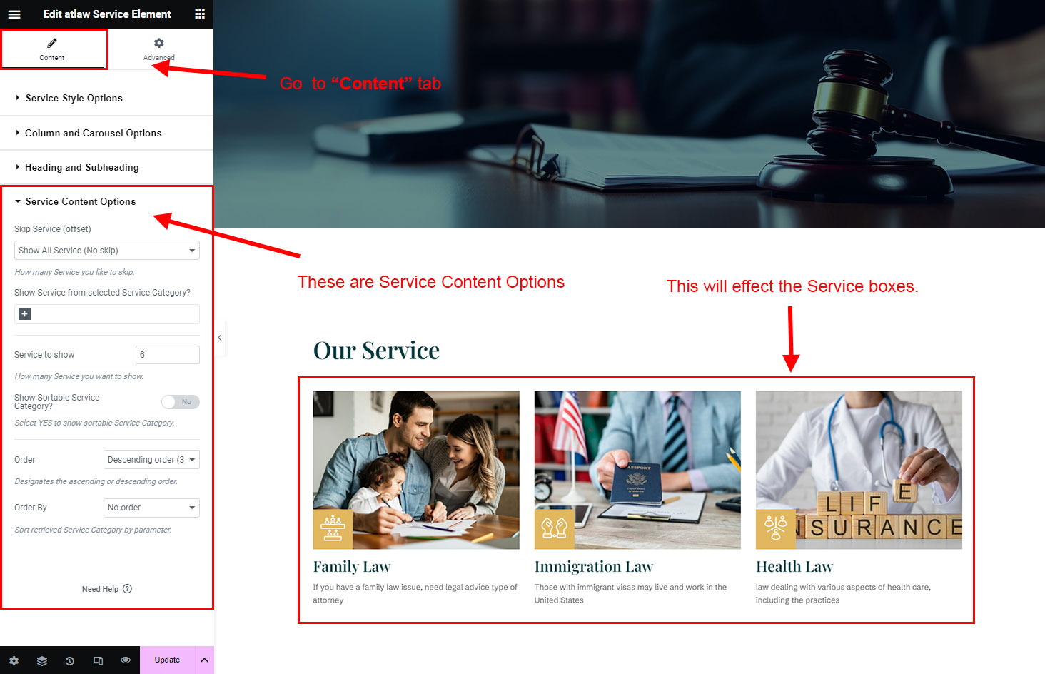 You can select the service options here. Like how many service you like to show, show service from selected category, service order etc.