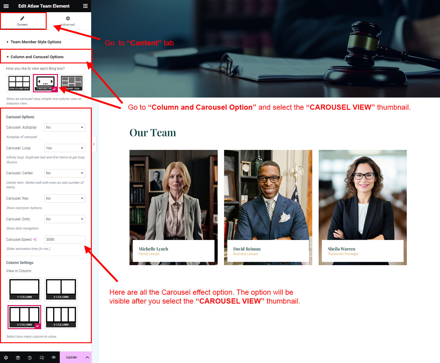 You can select the team options here. Like how many team you like to show, show team from selected category, team order etc.