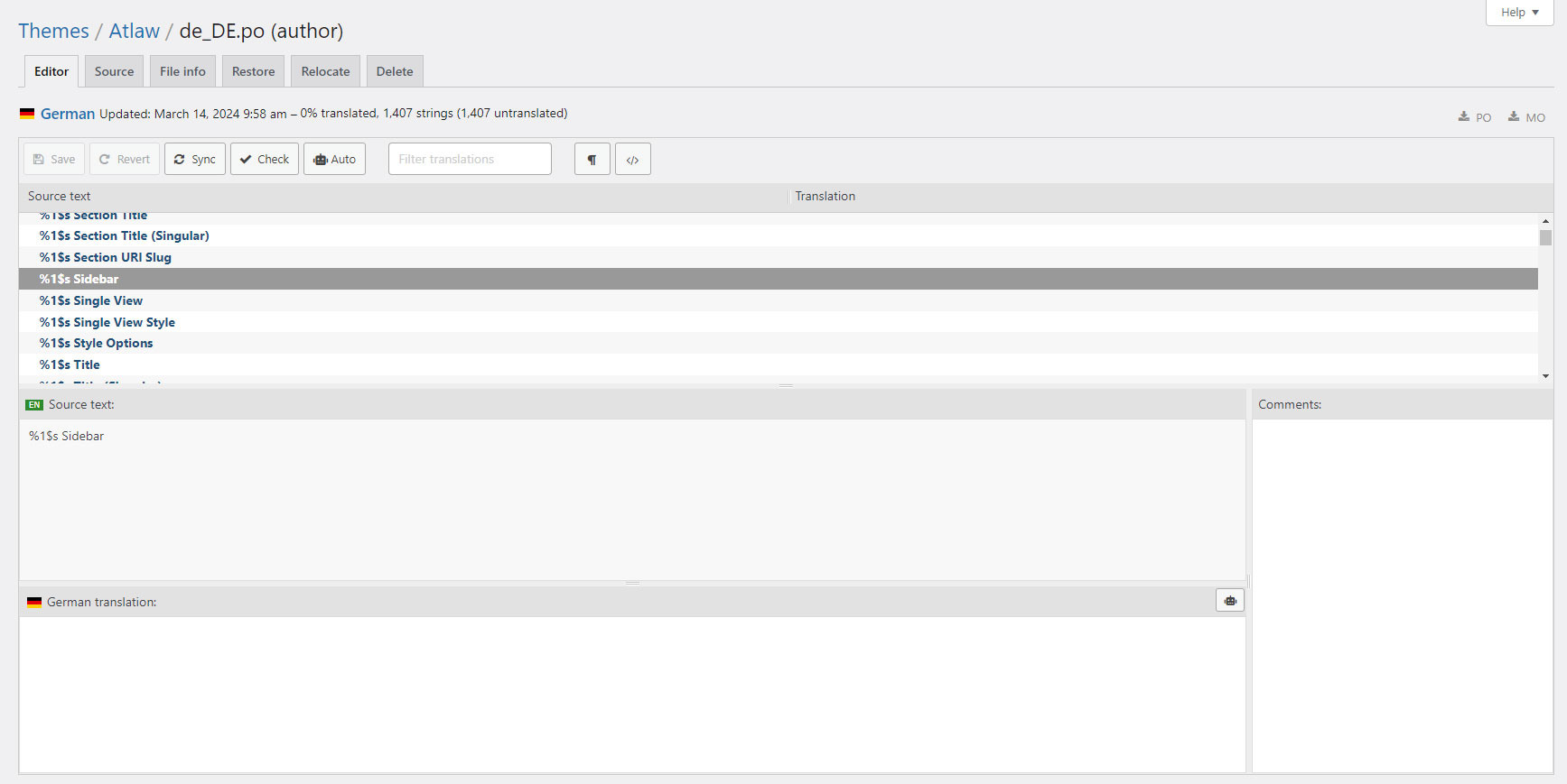 Atlaw-de_DE.mo file on your server in