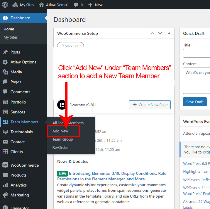 First go to Team >> Add New to create a new Team.