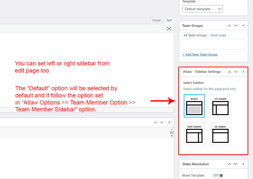 This is specially created sidebar postion for Team Group view only. You can select sidebar view (left or right) in Atlaw Options >> Team Member Options section. Also you can show Team Group without sidebar too.