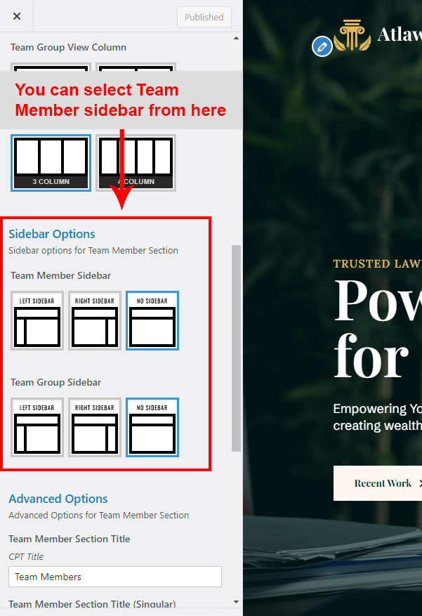 This is specially created sidebar postion for Team Member single view only. You can select sidebar view (left or right) in Atlaw Options >> Team Member Options section. Also you can show single Team Member without sidebar too.