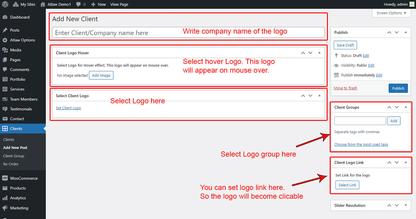 First go to Clients >> Add New to add a new logo.