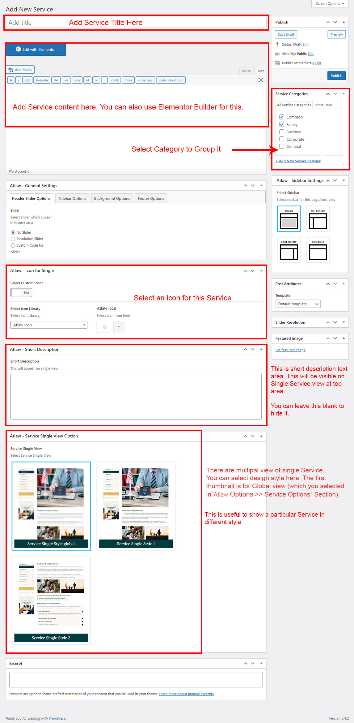 If you already done demo content setup than you can edit existing service and check how we added data so you can understand each option perfectly.
