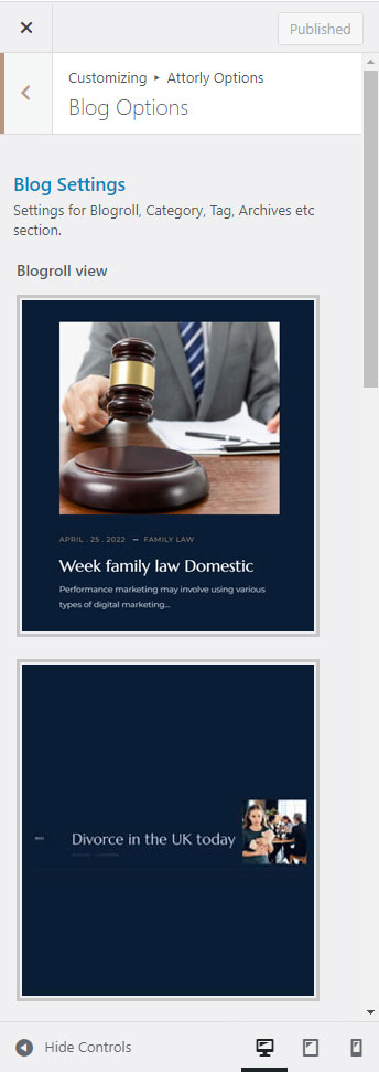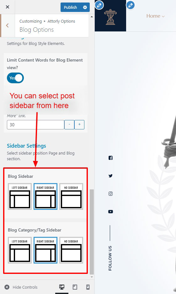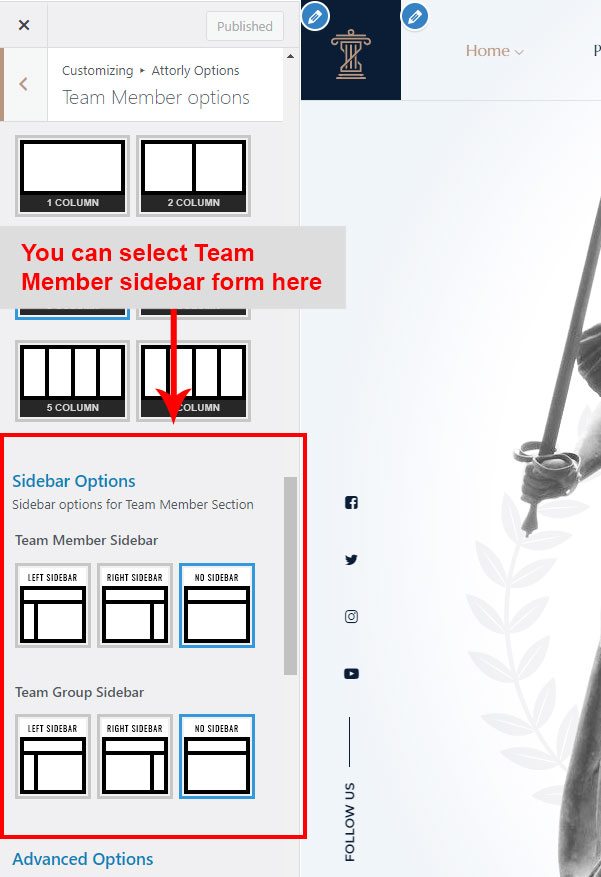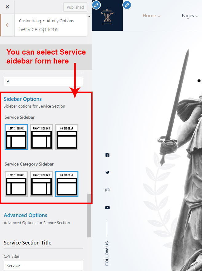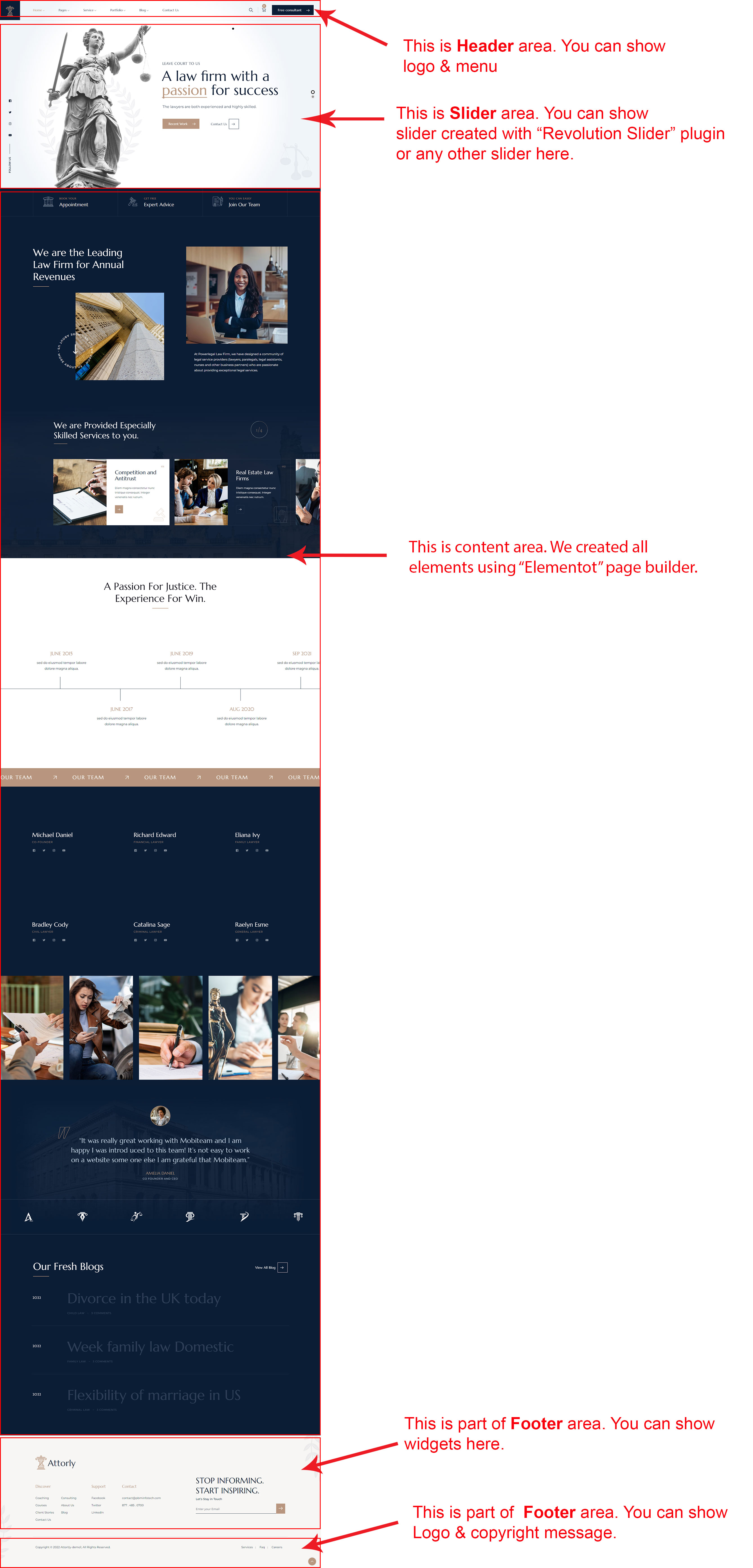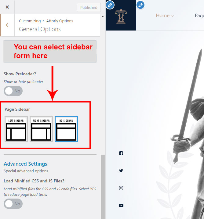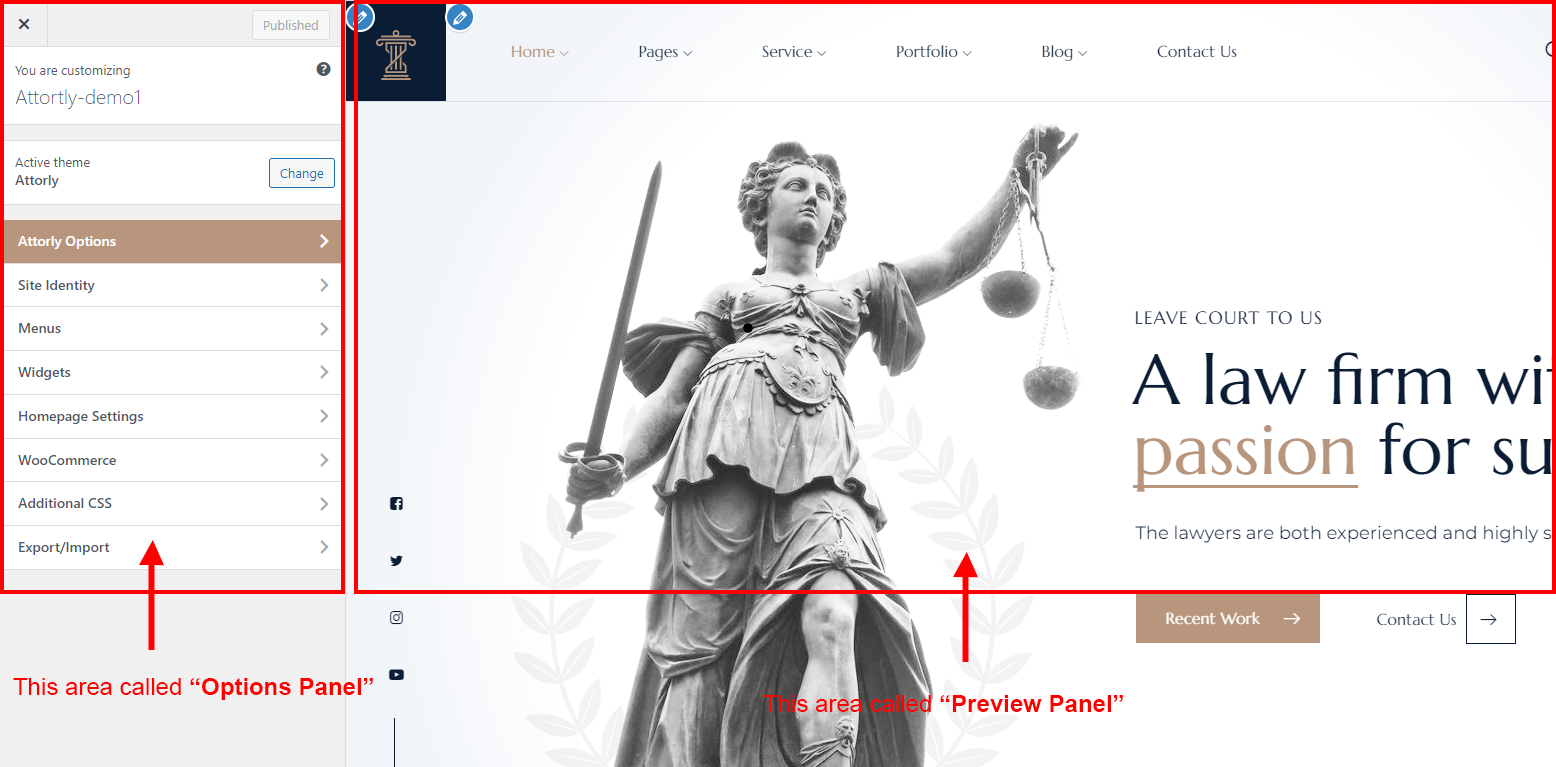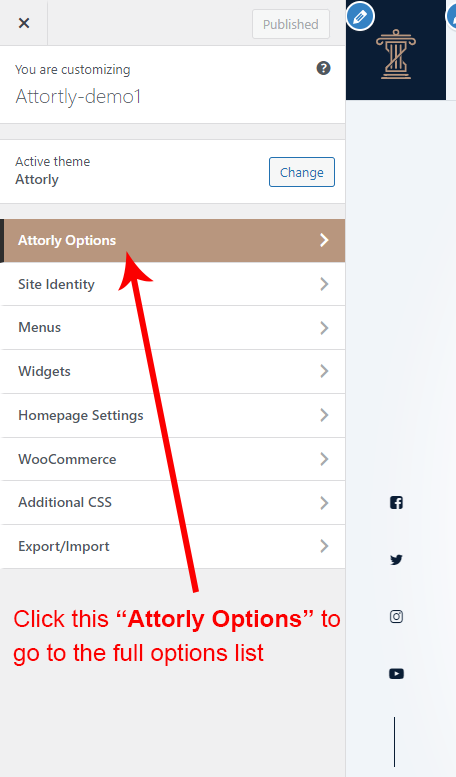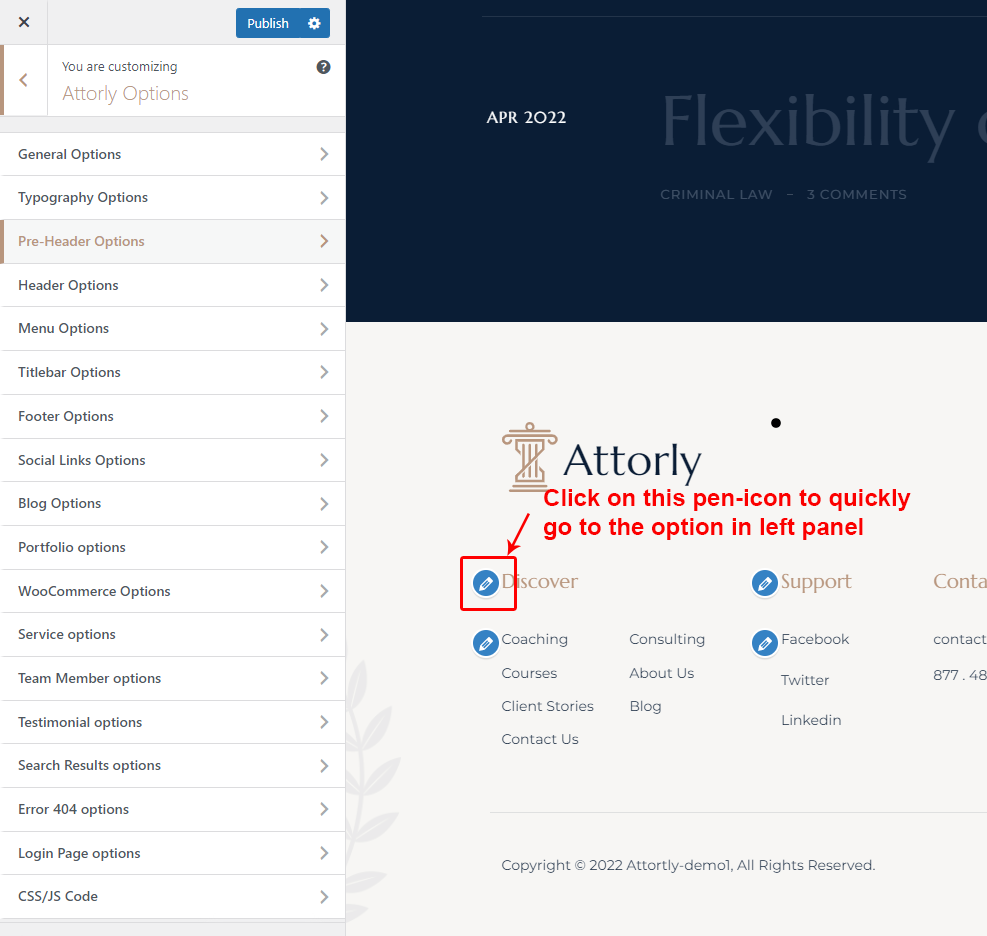 There are different sections in Attorly theme. Here you will find name of each section name so you can find their options easily. You can customize each sections from Attorly Options easily.