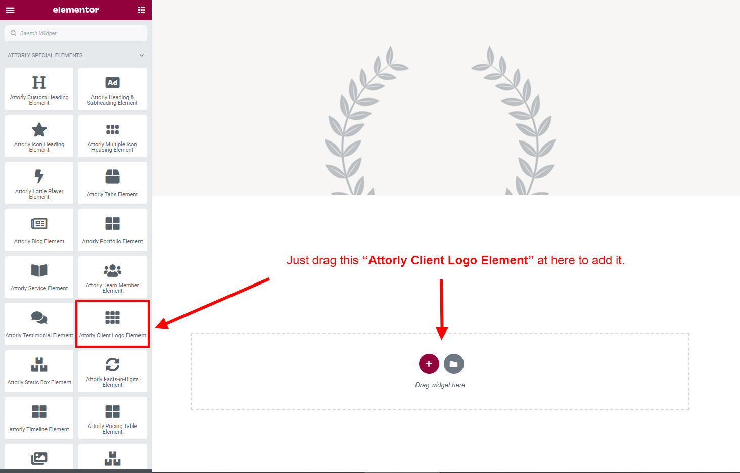 Now we have some Client Logo posts. So we can show all Client Logo on a page. Create a new page and add Attorly Client Logo Element on a page by dragging it.