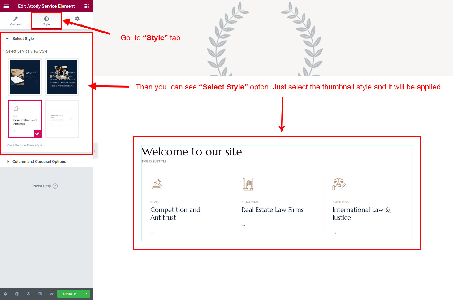 You can select the service options here. Like how many service you like to show, show service from selected category, service order etc.