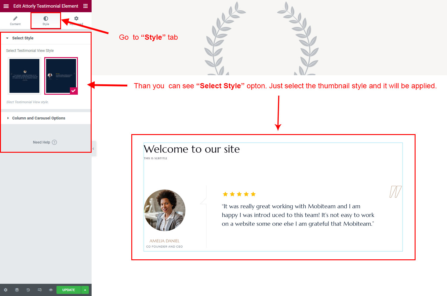There are lot's of options to select in this Testimonial element.