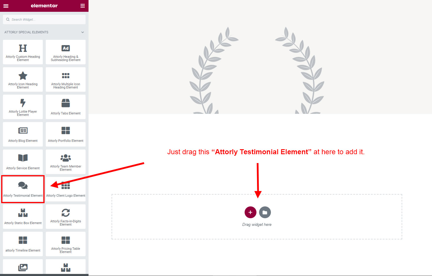 Now we have some Testimonial posts. So we can show all Testimonial on a page. Create a new page and add Attorly Testimonial Element on a page by dragging it.