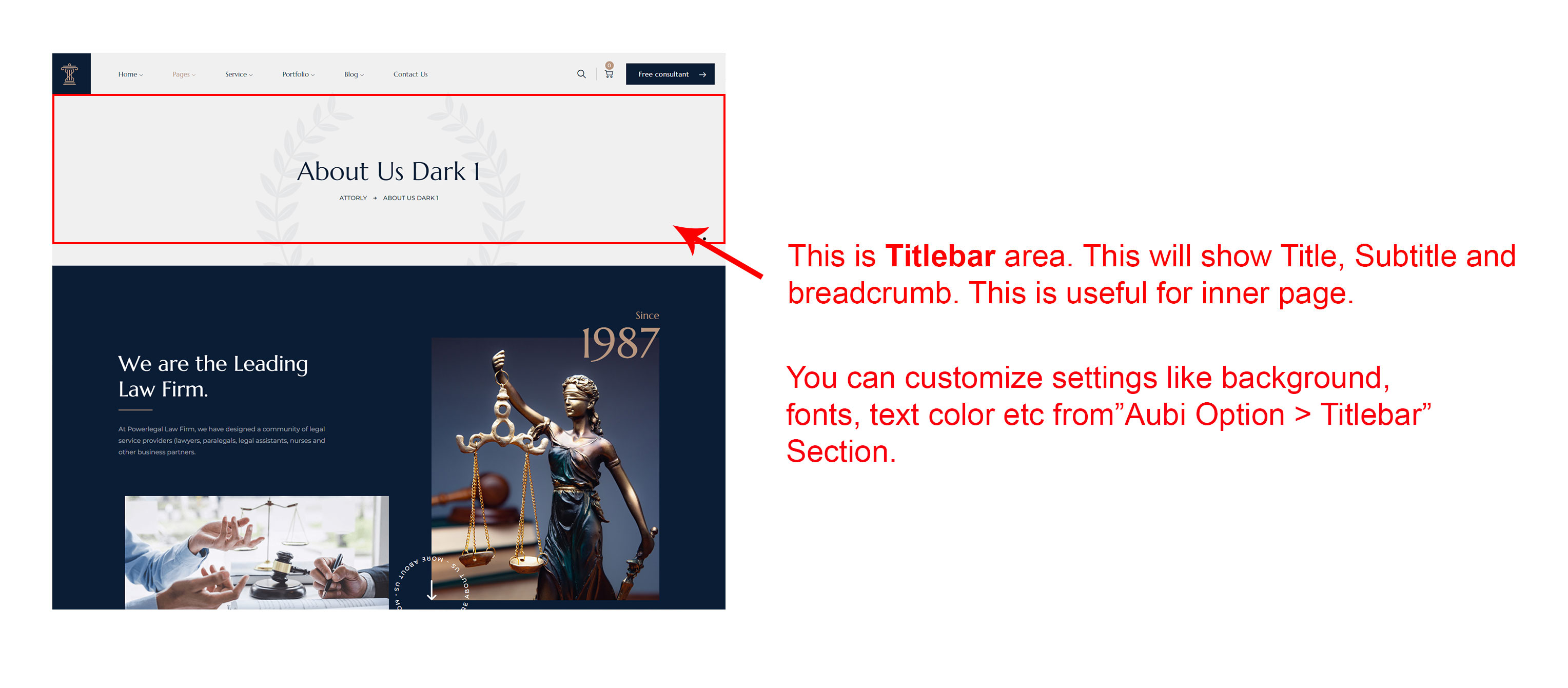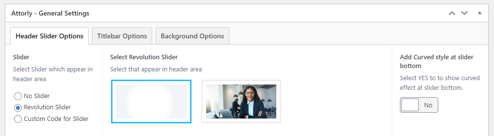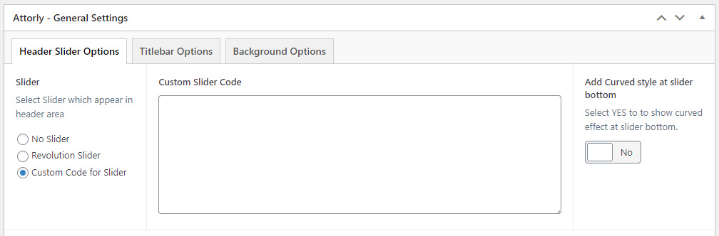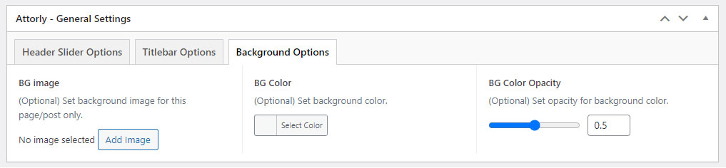 This will override the options set under Attorly Options > Titlebar Settings options. This will help you to set special design the Titlebar on specific page or post.