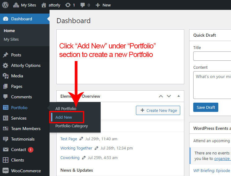 First go to Portfolio >> Add New to create a new Portfolio.