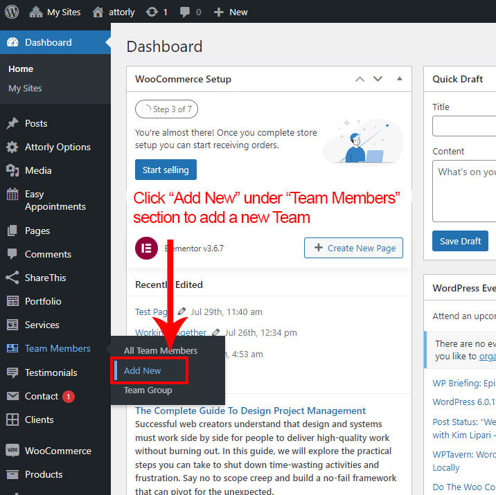 First go to Team >> Add New to create a new Team.