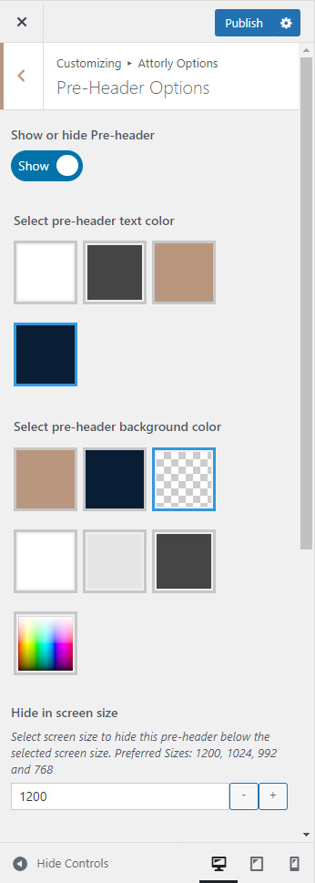 Pre-header section will appear above header area. You can show or hide it globally from Attorly Options >> Pre-header Settings section.