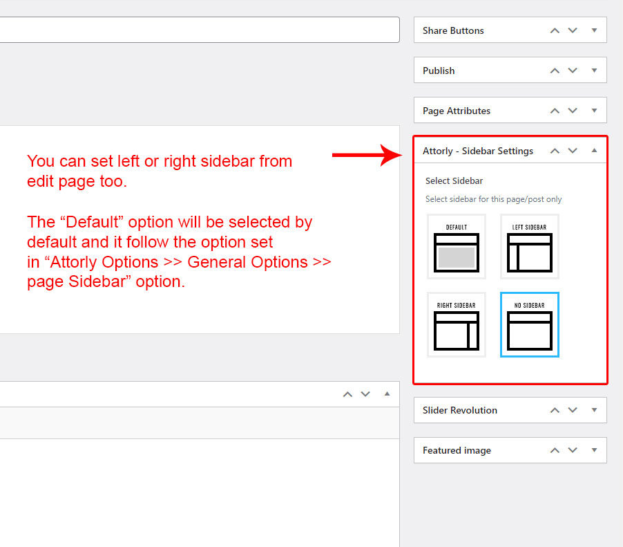 This is specially created sidebar postion for Pages only. You can select sidebar view (left or right) in Attorly Options >> General Settings section. Also you can show pages without sidebar too.
