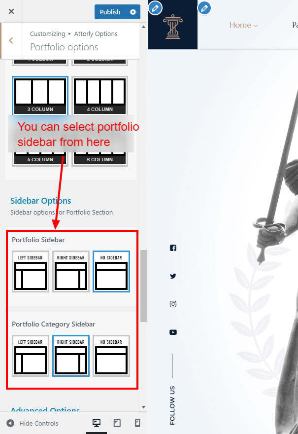 This is specially created sidebar postion for Portfolio Category view only. You can select sidebar view (left or right) in Attorly Options >> Portfolio Options section. Also you can show Portfolio Category without sidebar too.
