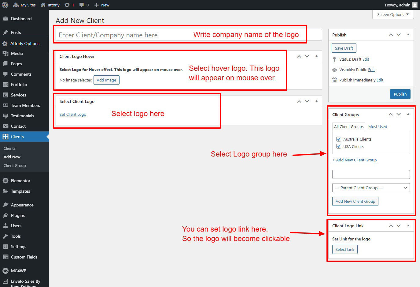 This will add a new logo. Repeat this steps and add some 3 or 6 client logo posts with the steps described above.