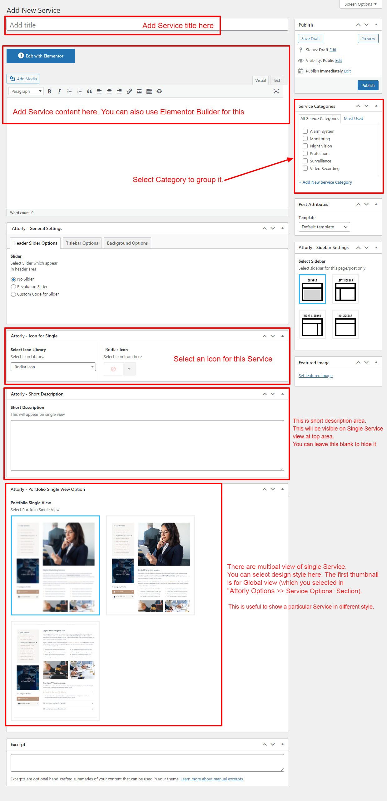 If you already done demo content setup than you can edit existing service and check how we added data so you can understand each option perfectly.