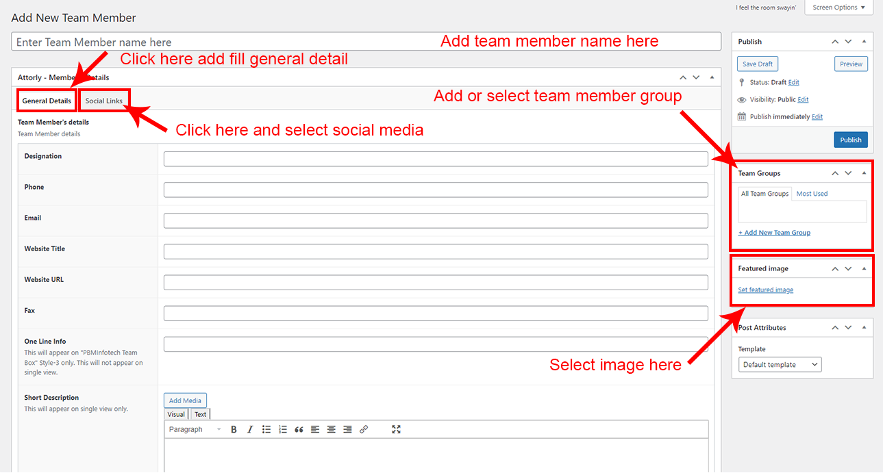 If you already done demo content setup than you can edit existing Team and check how we added data so you can understand each option perfectly.