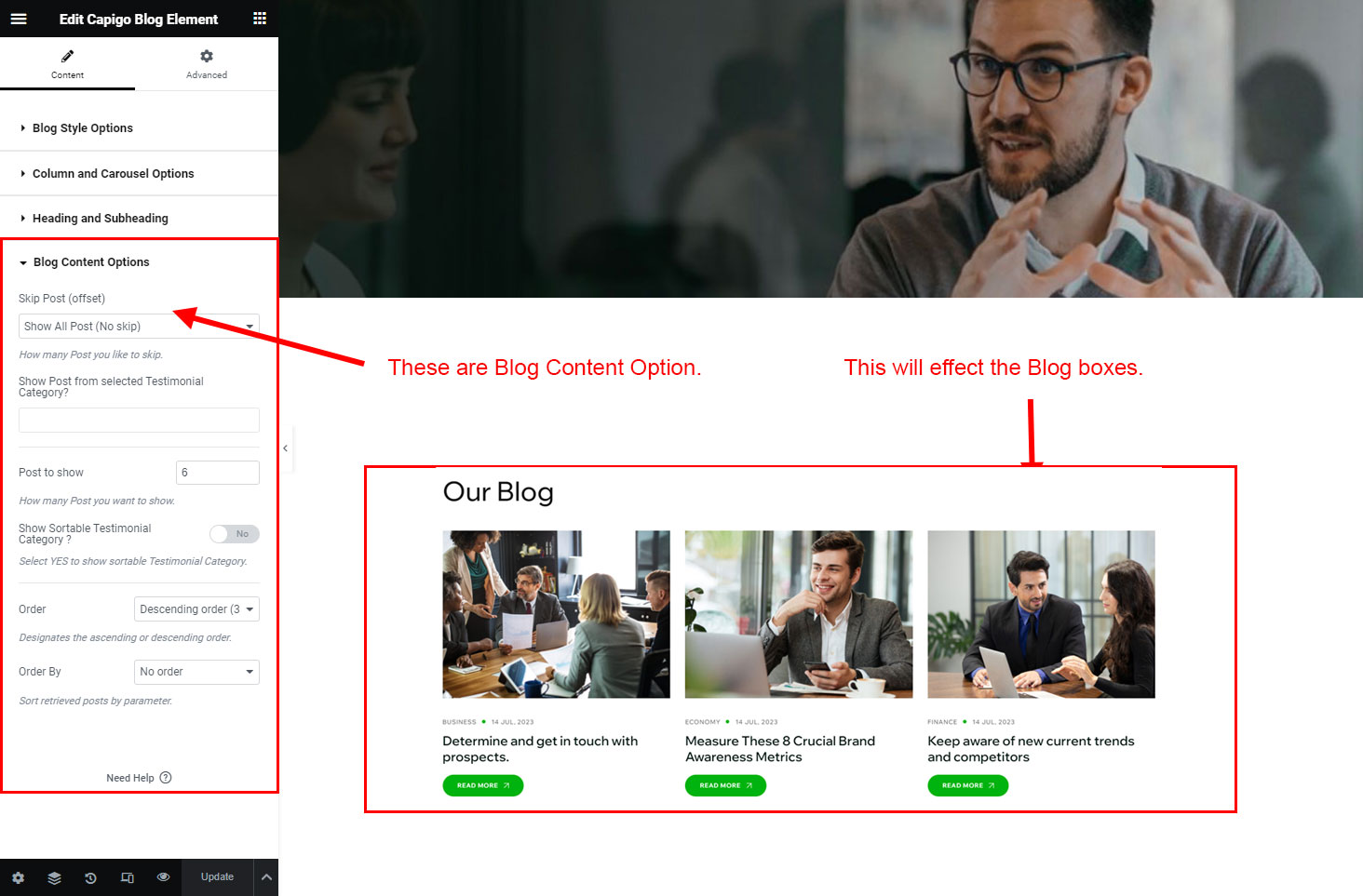 You can select the post options here. Like how many posts you like to show, show posts from selected category, post order etc.