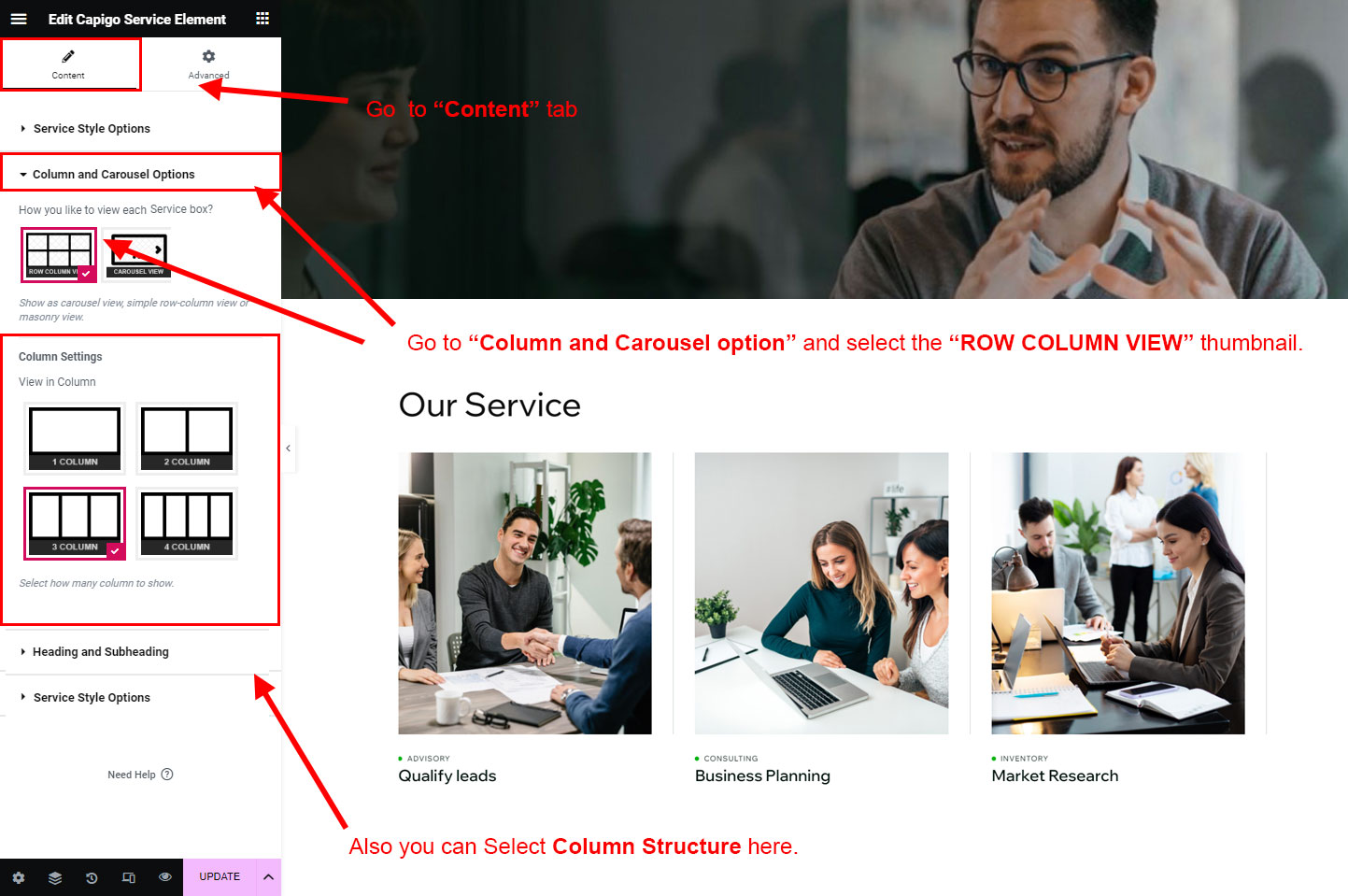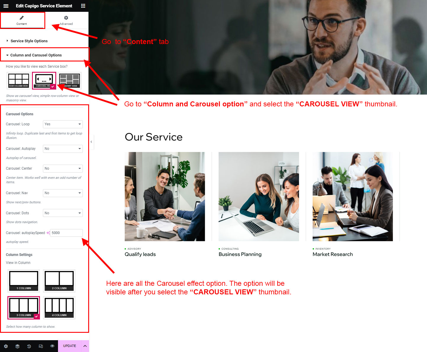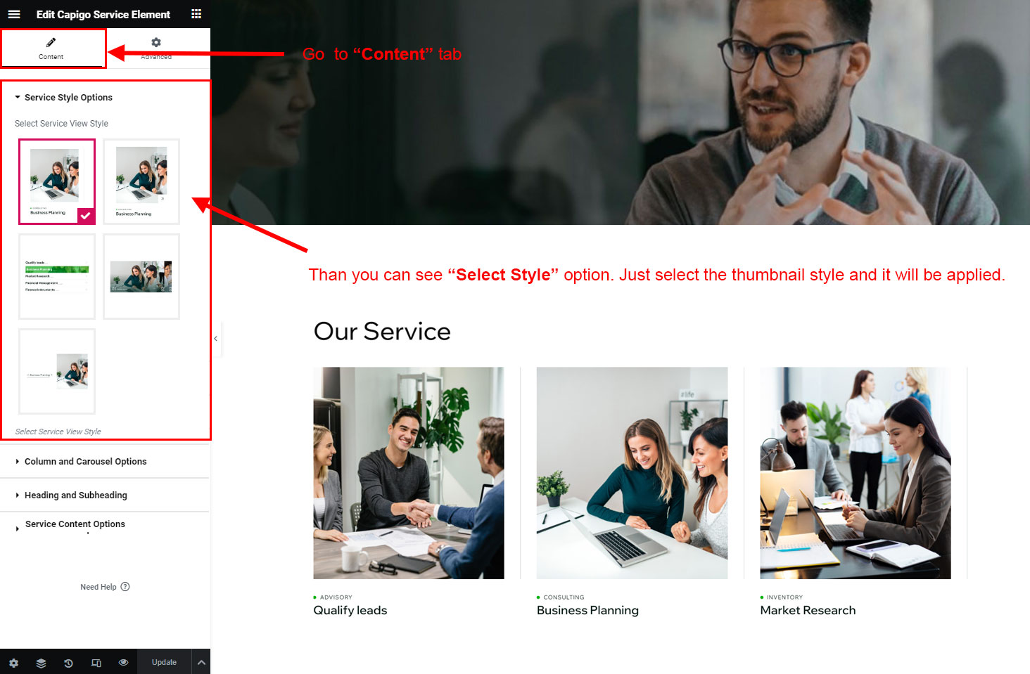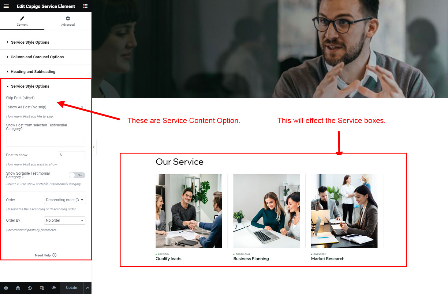 You can select the service options here. Like how many service you like to show, show service from selected category, service order etc.