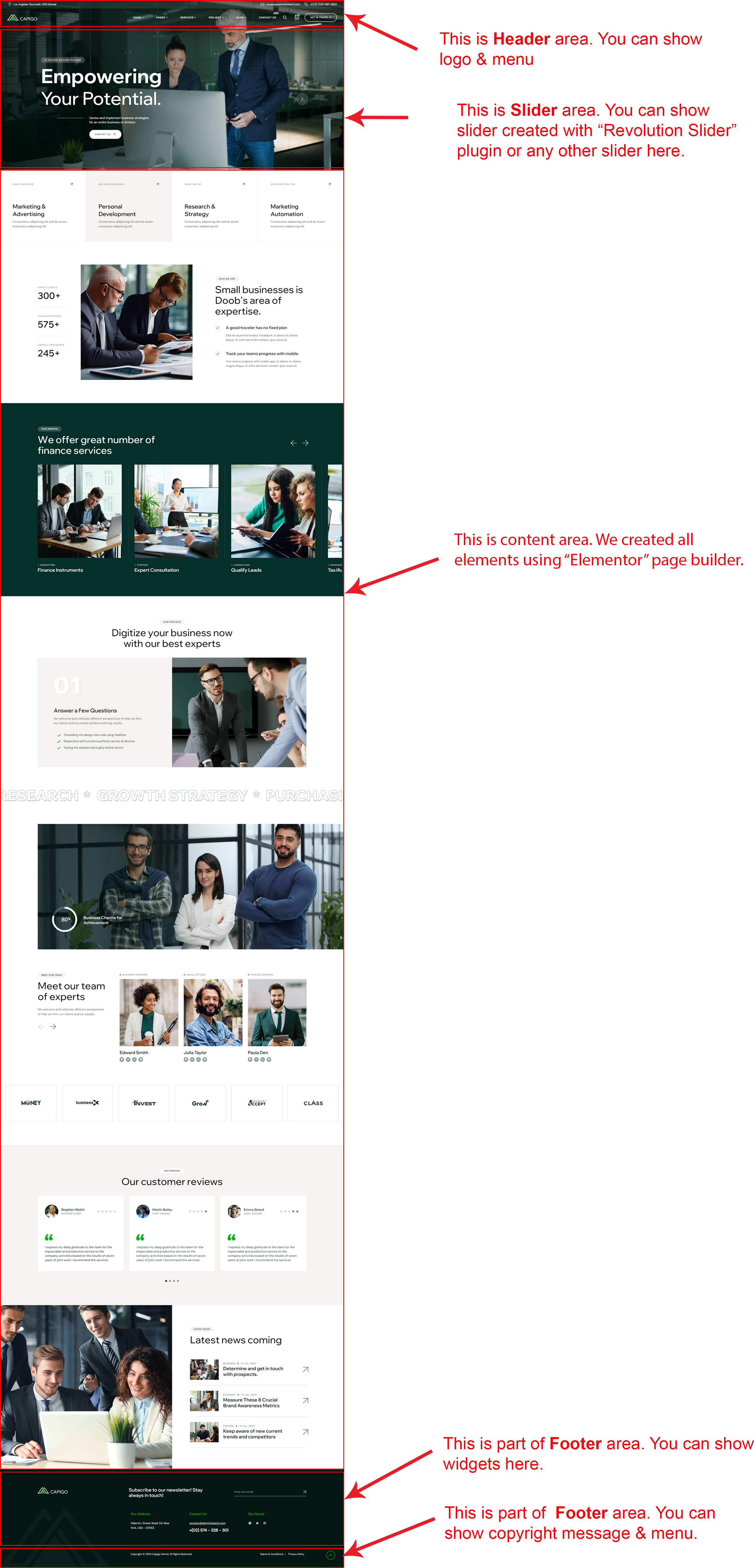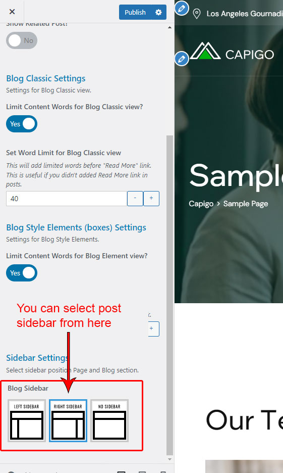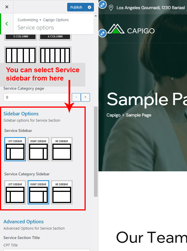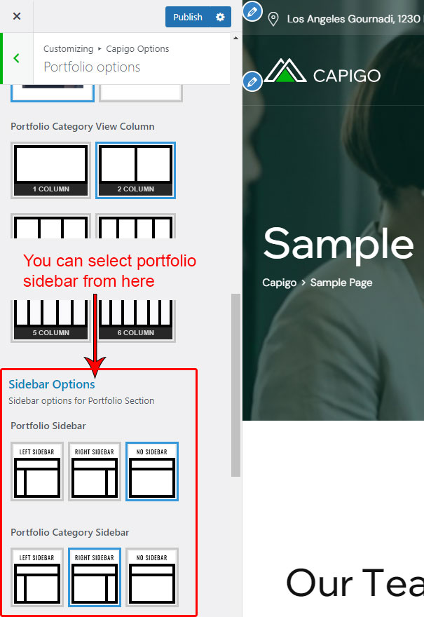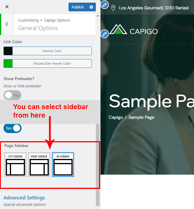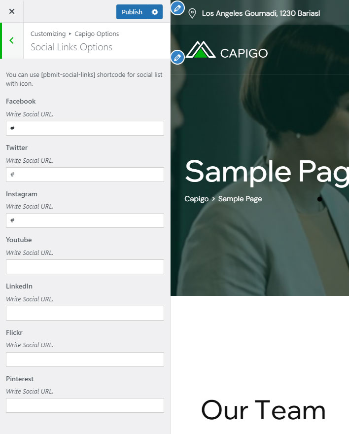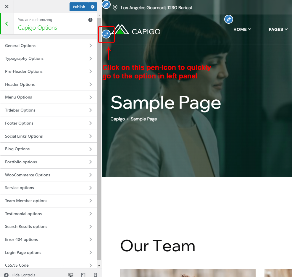 There are different sections in Capigo theme. Here you will find name of each section name so you can find their options easily. You can customize each sections from Capigo Options easily.
