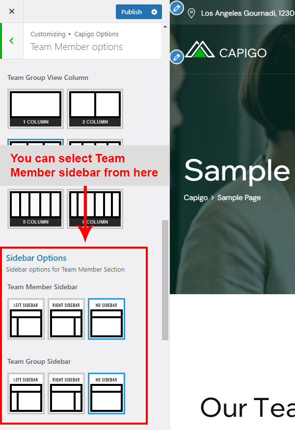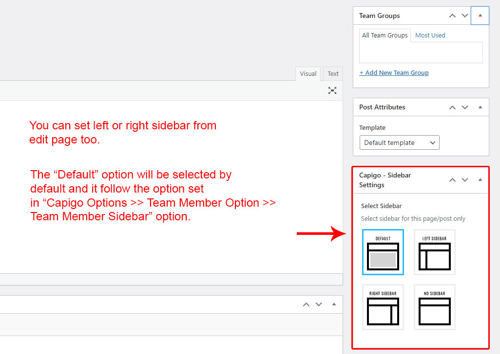 This is specially created sidebar postion for Team Group view only. You can select sidebar view (left or right) in Capigo Options >> Team Member Options section. Also you can show Team Group without sidebar too.