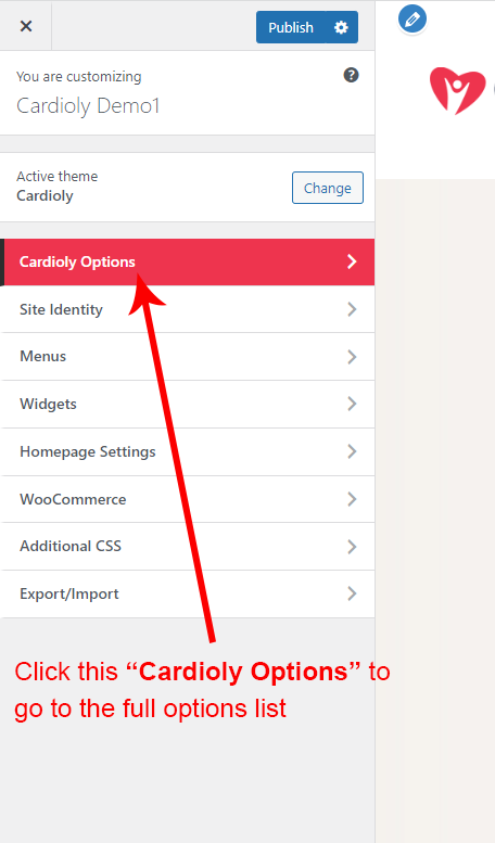 Now click on the Cardioly Options and you will see lot's of options for different theme sections.
