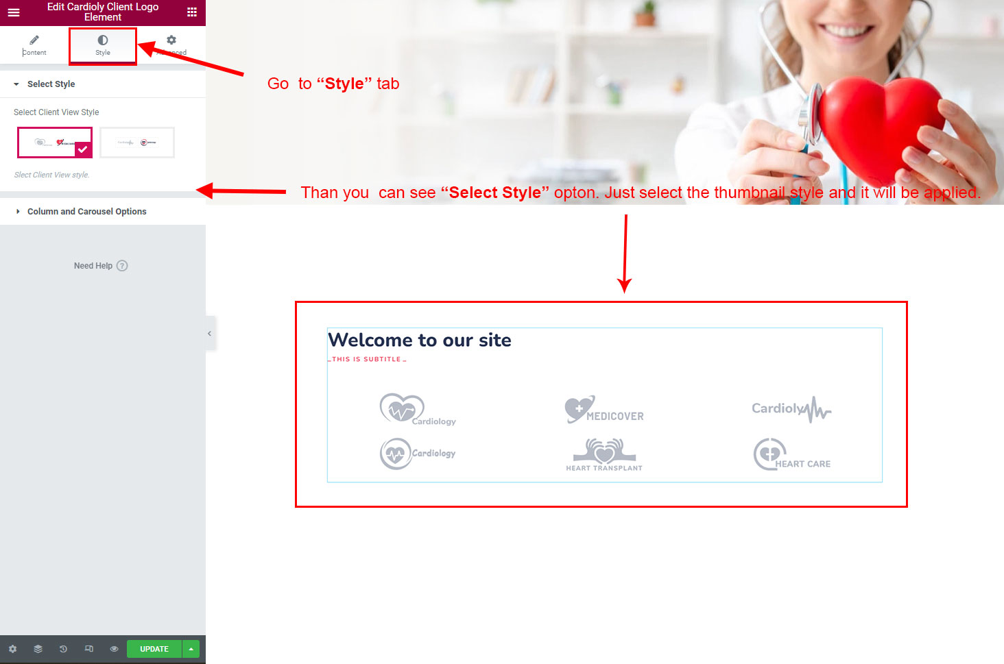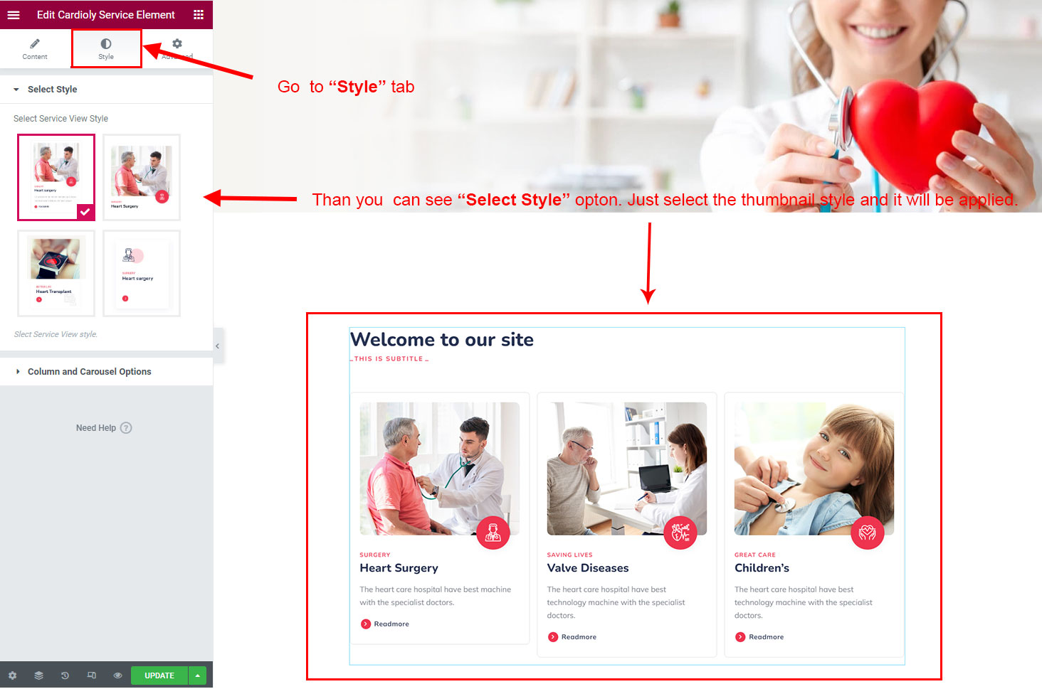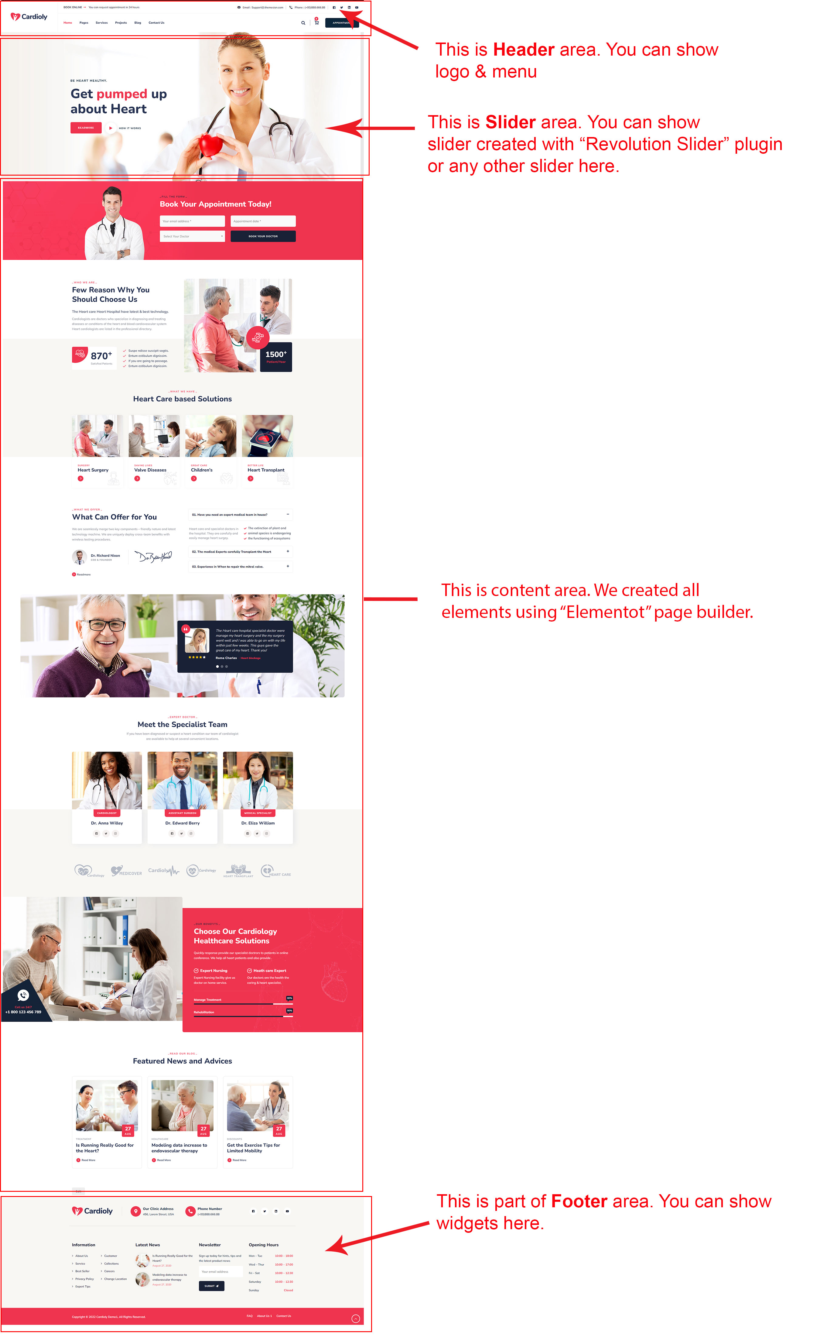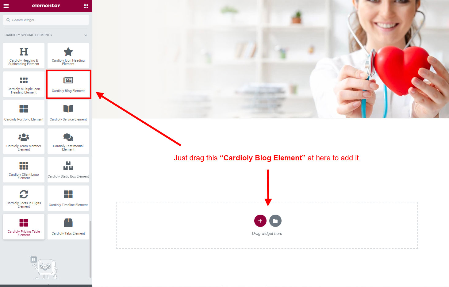 There are some widgets created specially for Cardioly theme. Here are the widgets: