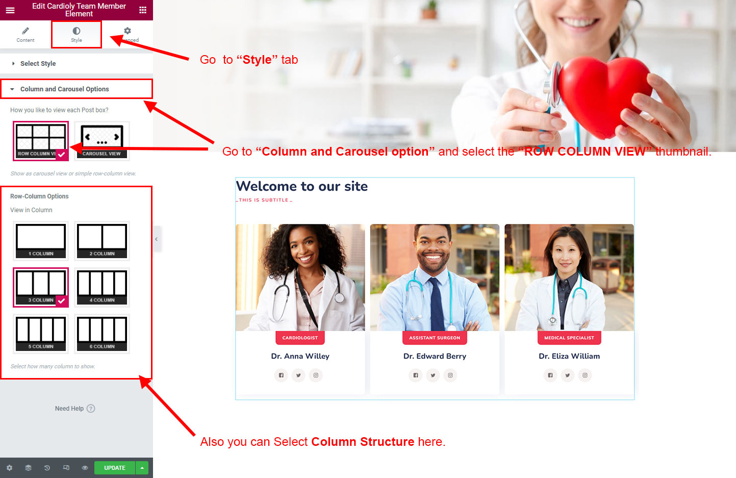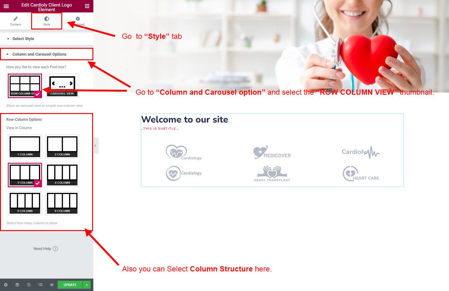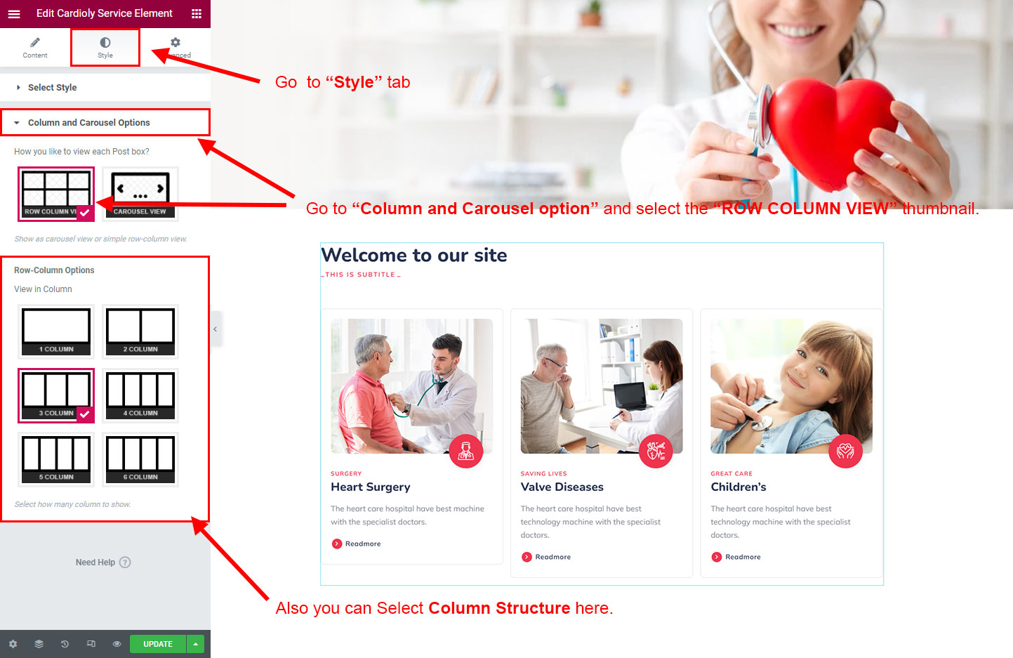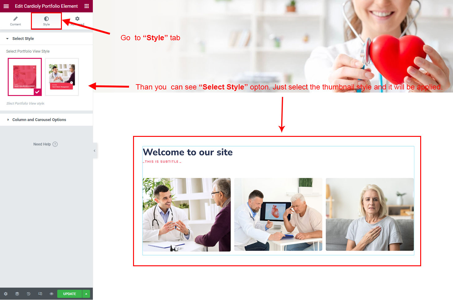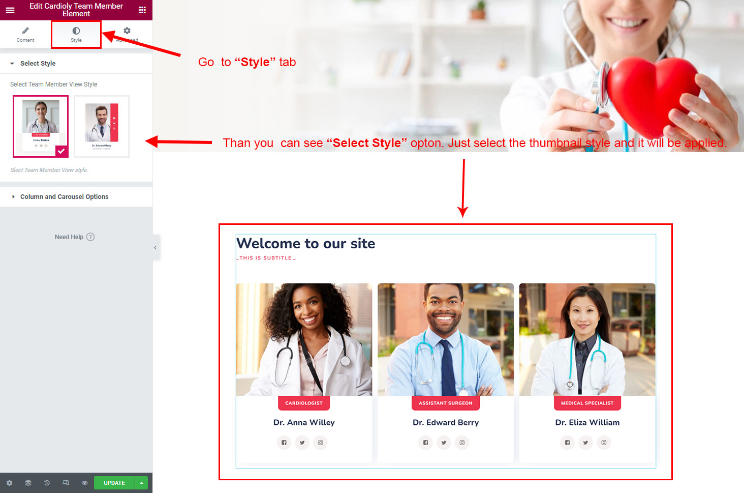 There are some widgets created specially for Cardioly theme. Here are the widgets: