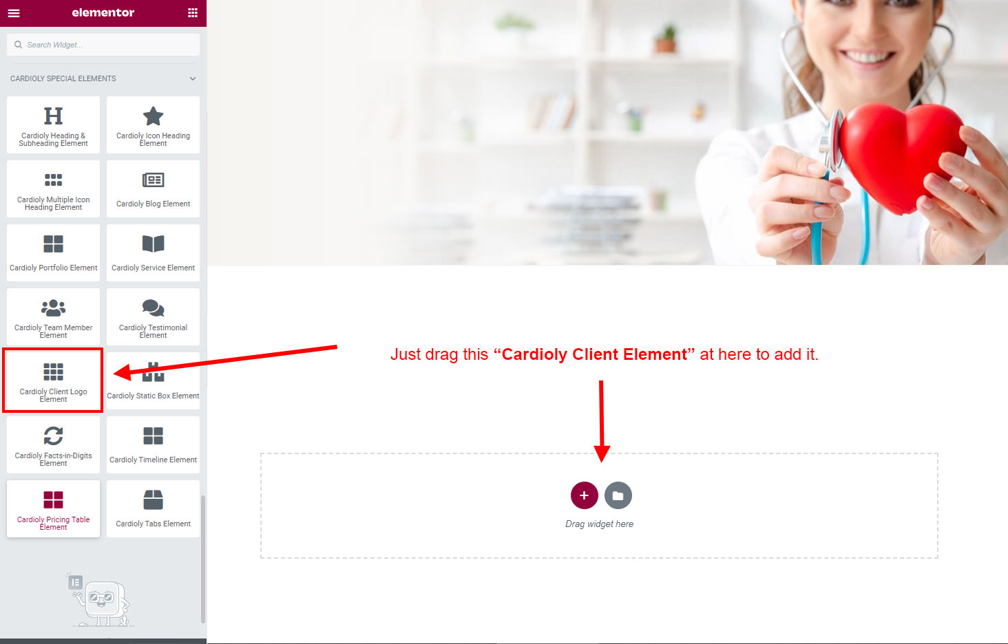 Now we have some Client Logo posts. So we can show all Client Logo on a page. Create a new page and add Cardioly Client Logo Element on a page by dragging it.