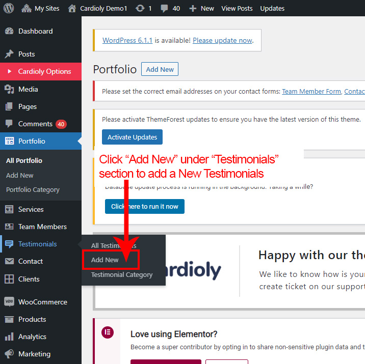 First go to Testimonial >> Add New to create a new Testimonial.