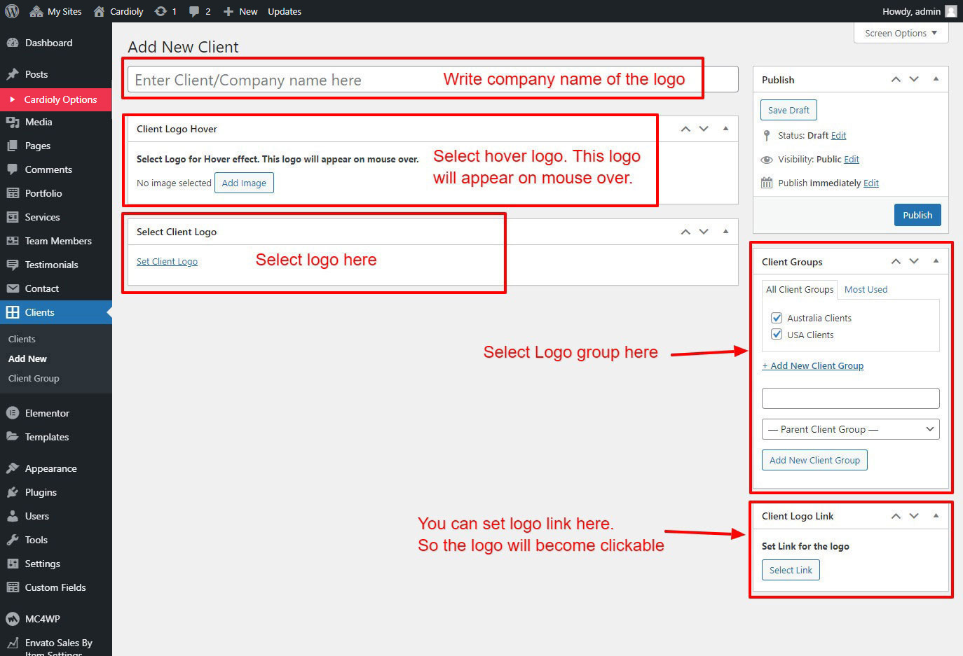 First go to Clients >> Add New to add a new logo.