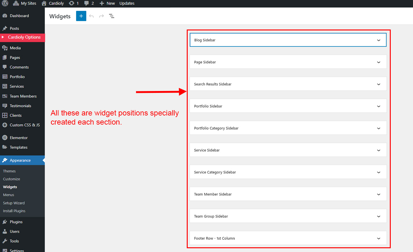 Cardioly theme comes with widgets and different positions. We created special widget positions for each section so you can show sidebar and footer widgets properly according to content. Here are description of all widget positions: