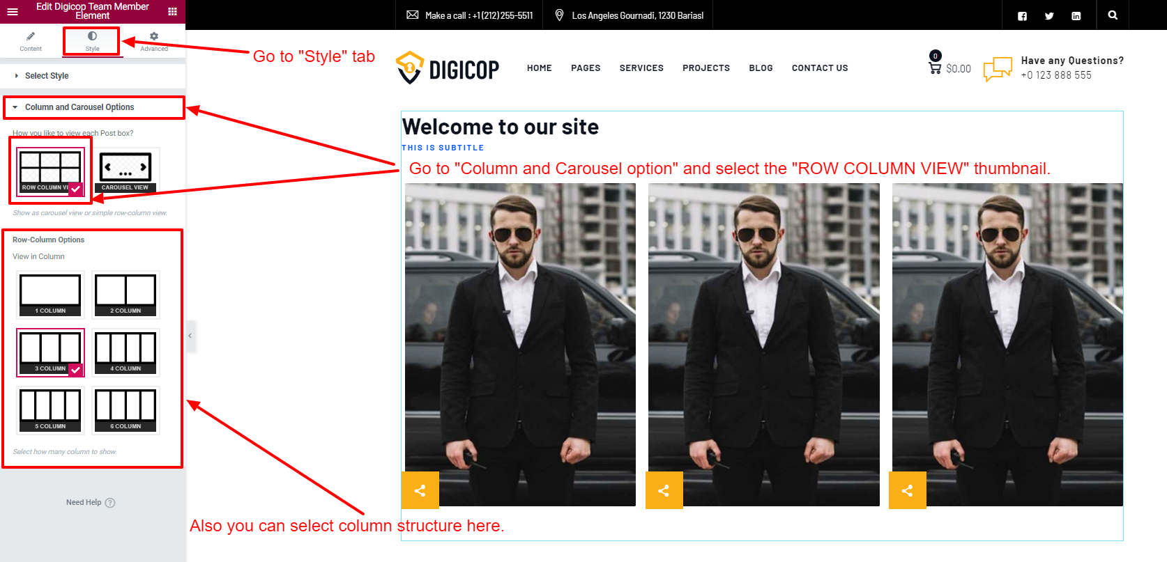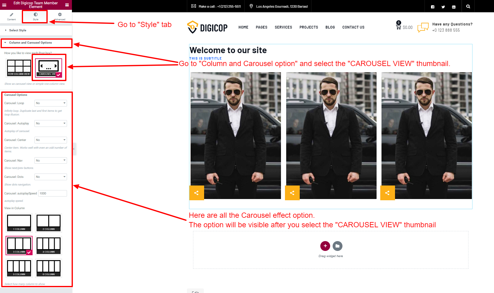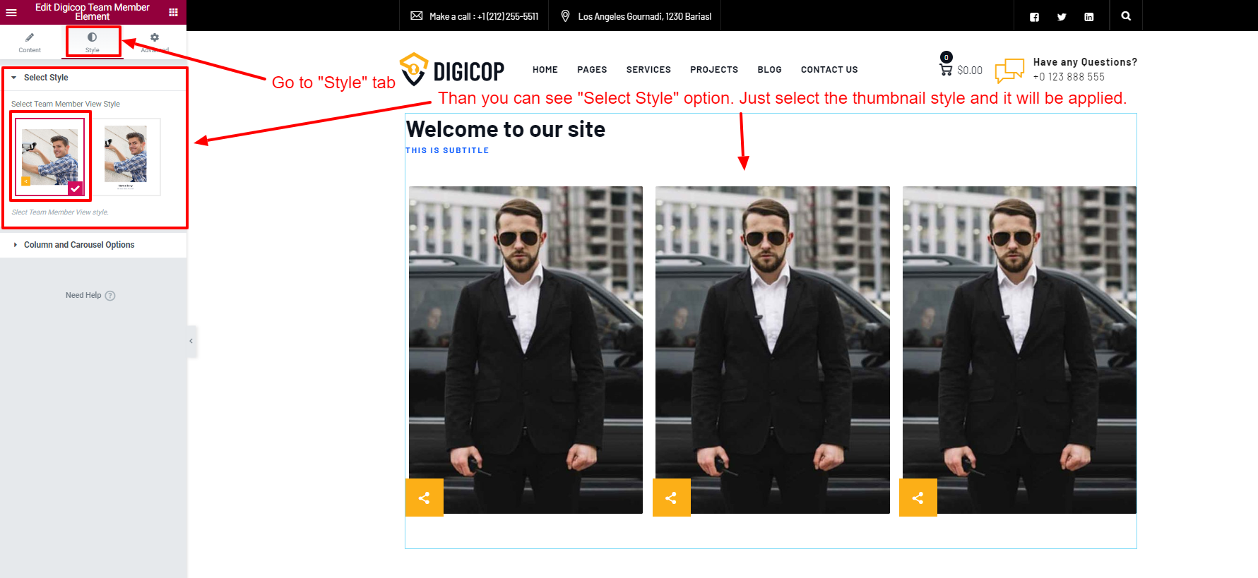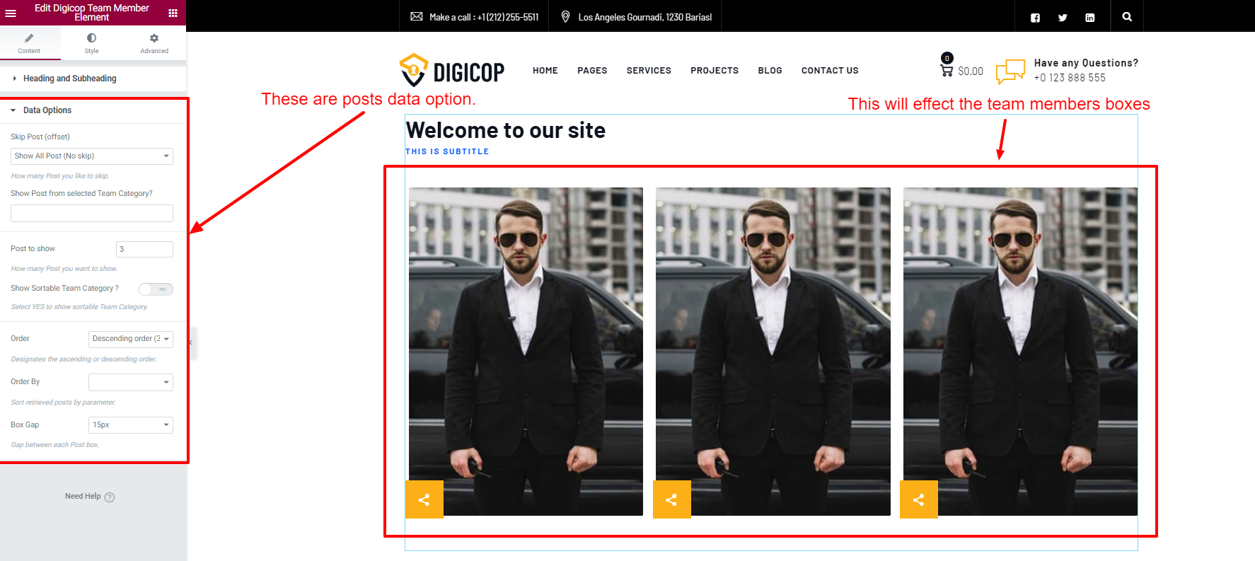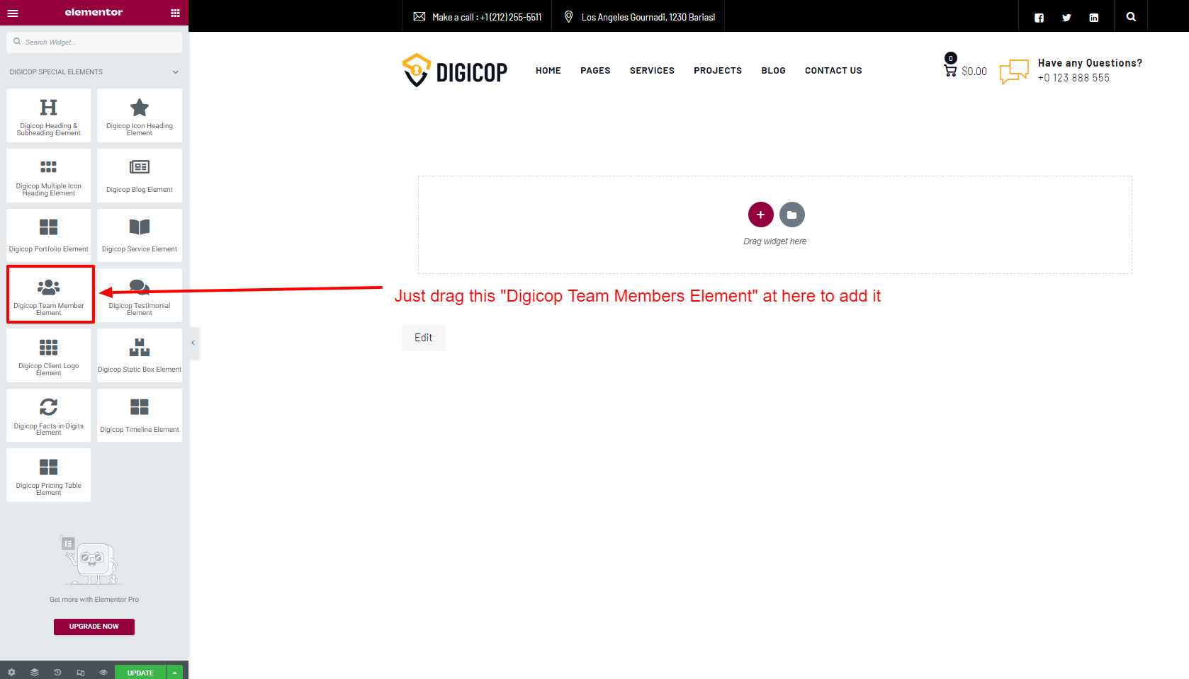 Now we have some Team posts. So we can show all Team on a page. Create a new page and add Digicop Team Member Element on a page by dragging it.