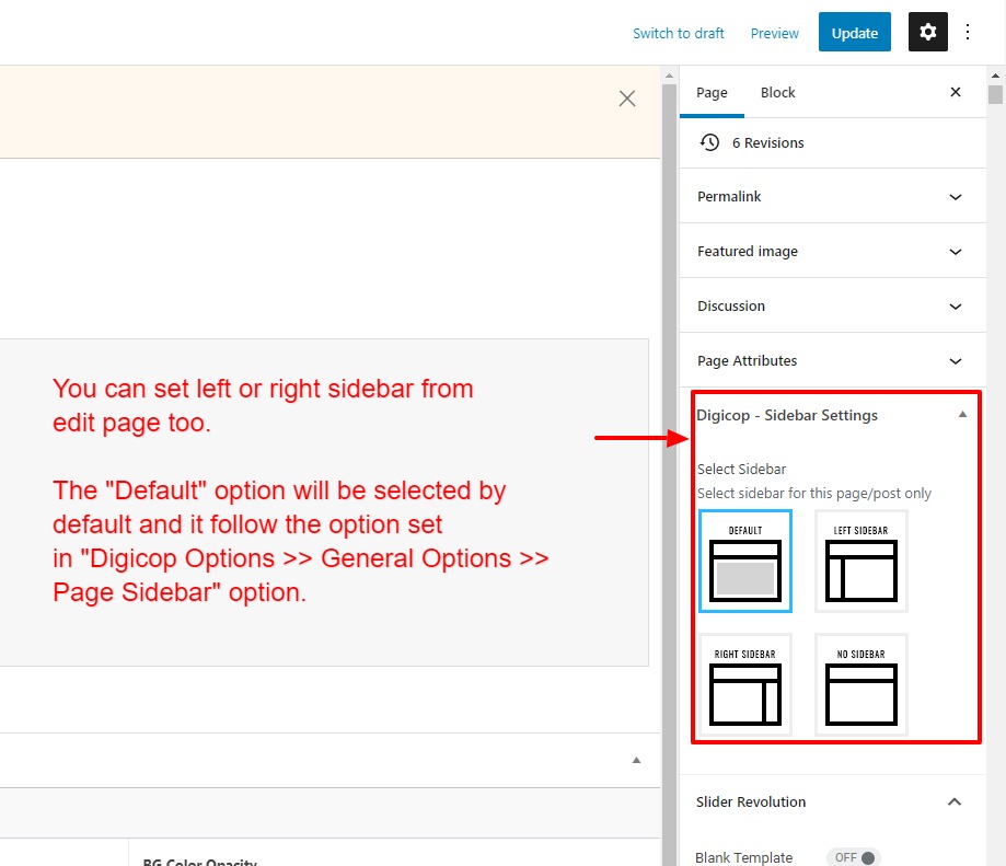This is specially created sidebar postion (either left or right as selected in Digicop Options section) that will be shown as sidebar widget on Blog pages like blog list view, single post view, blog category view etc.