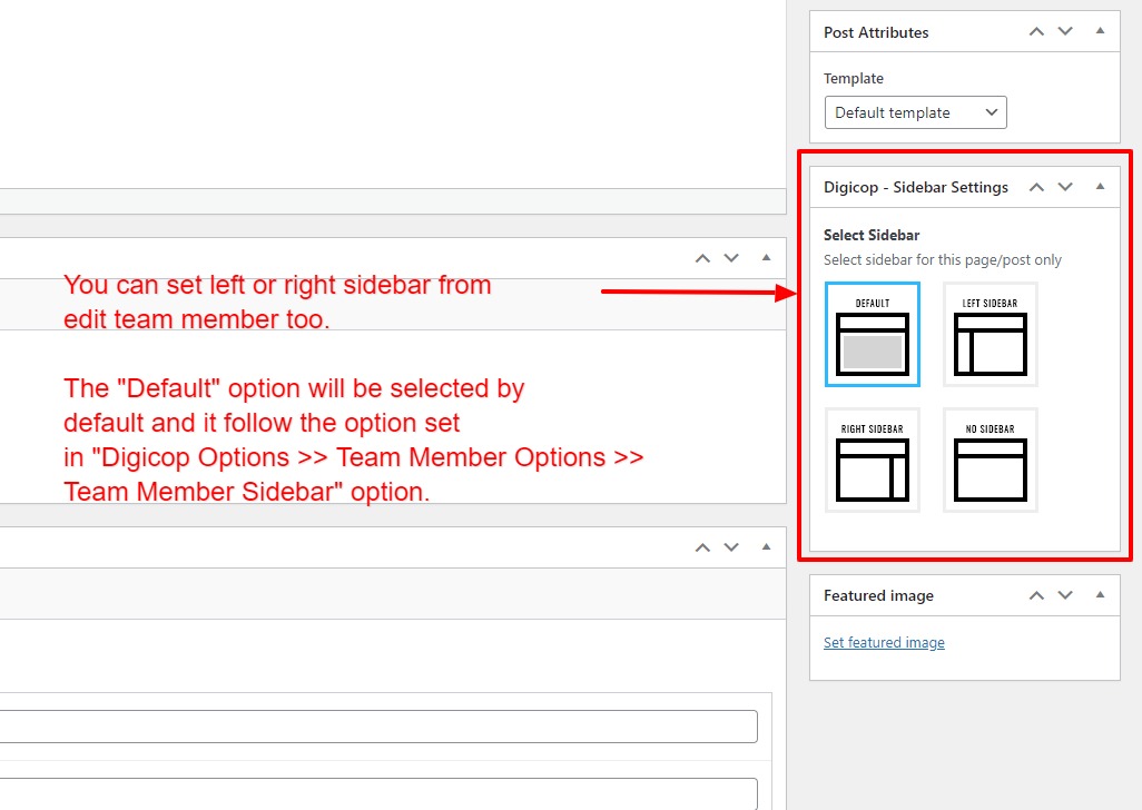 This is specially created sidebar postion for Team Member single view only. You can select sidebar view (left or right) in Digicop Options >> Team Member Options section. Also you can show single Team Member without sidebar too.