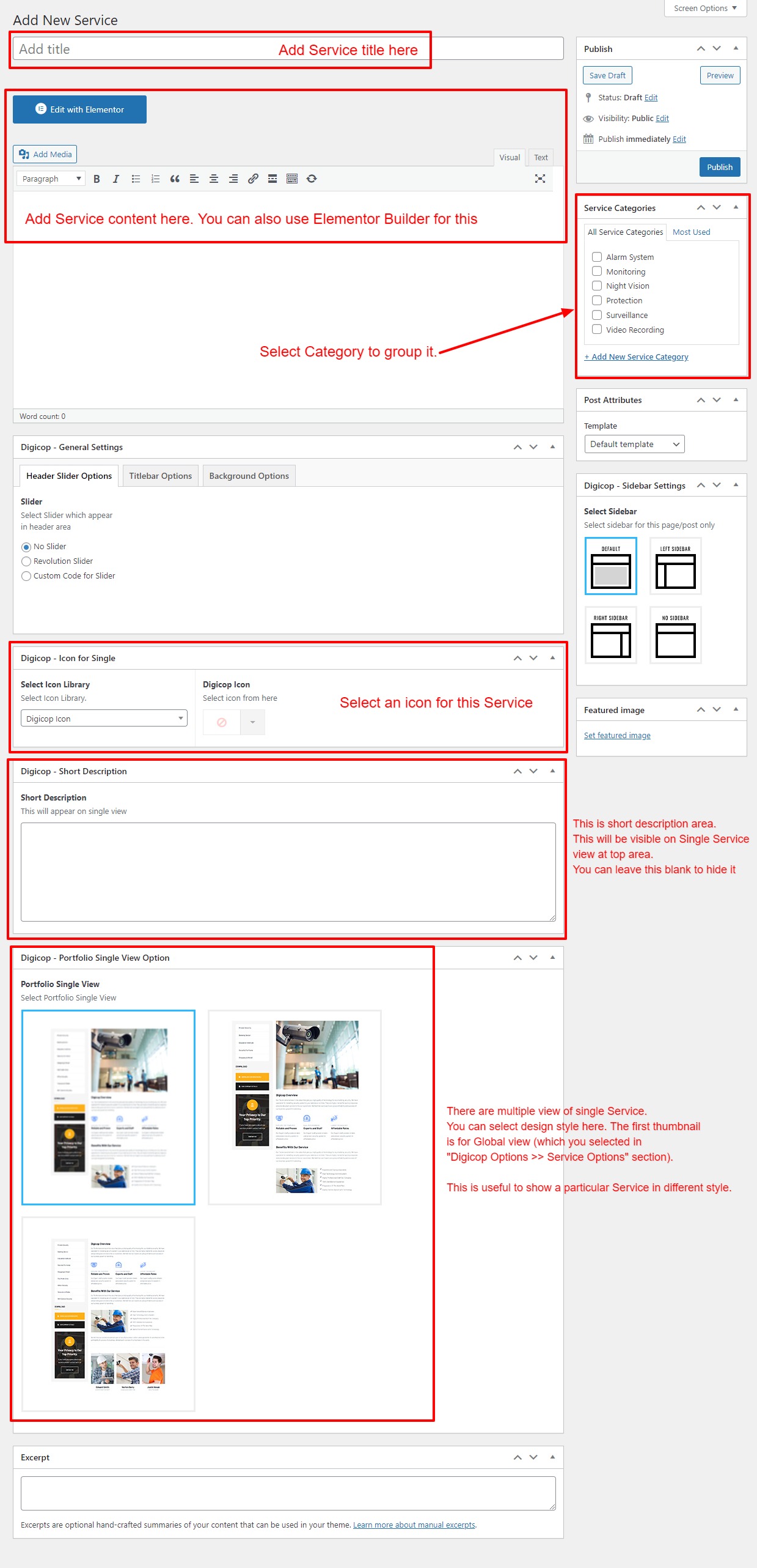 If you already done demo content setup than you can edit existing service and check how we added data so you can understand each option perfectly.