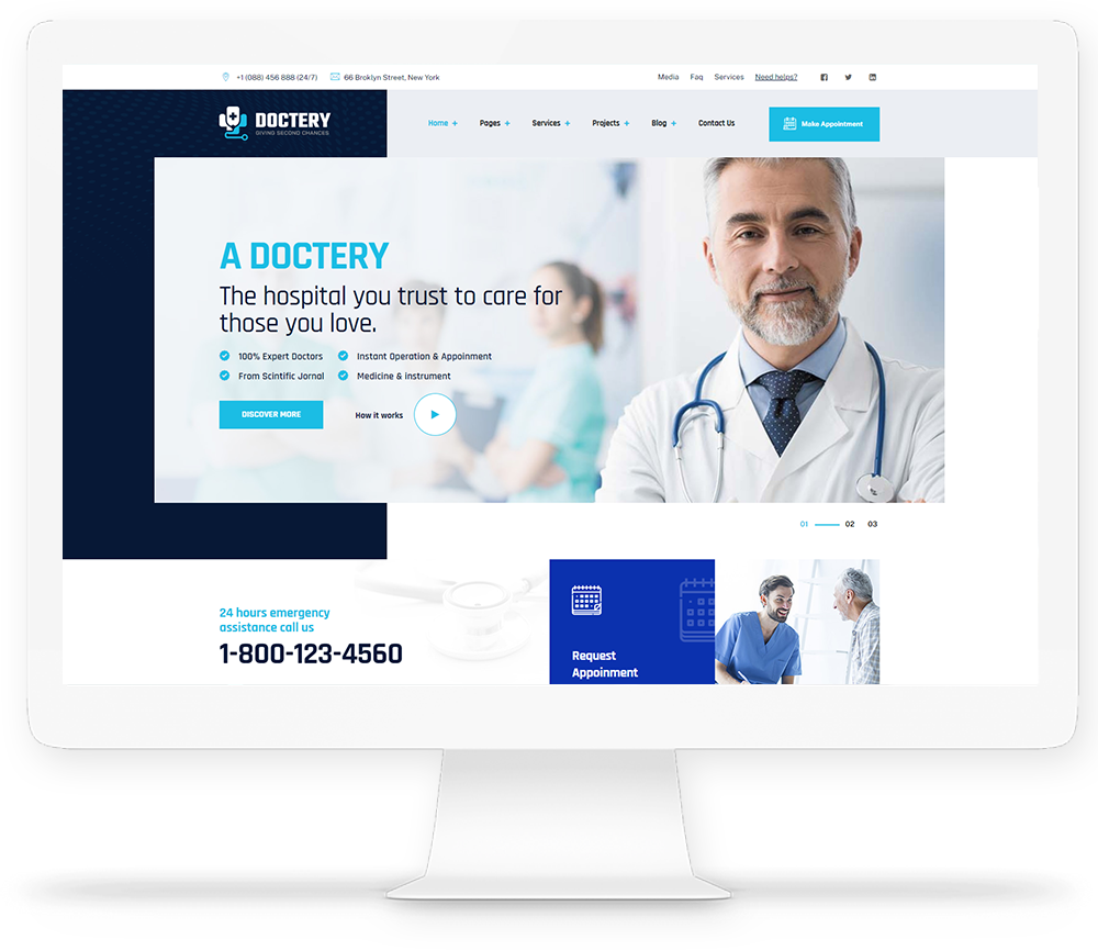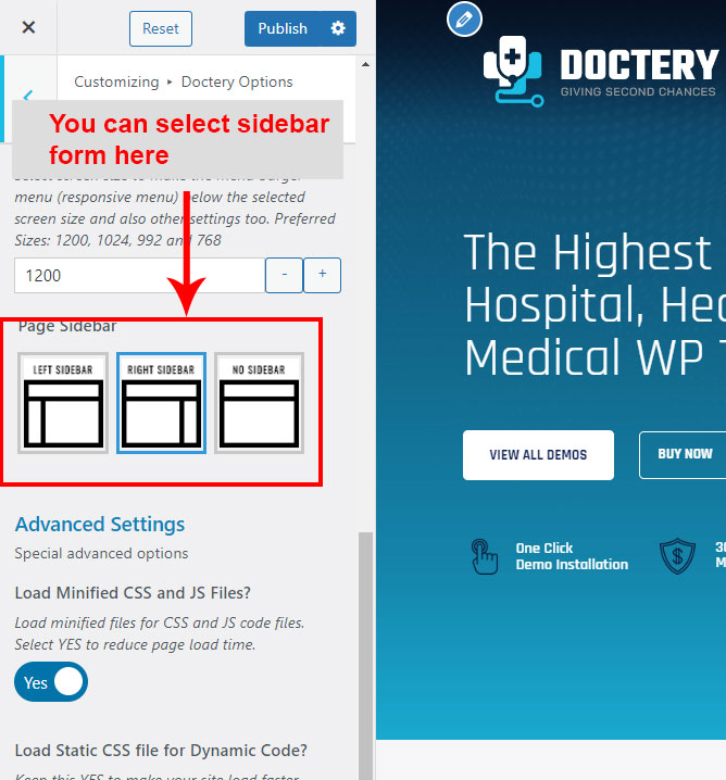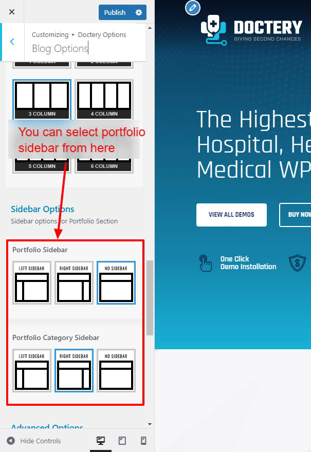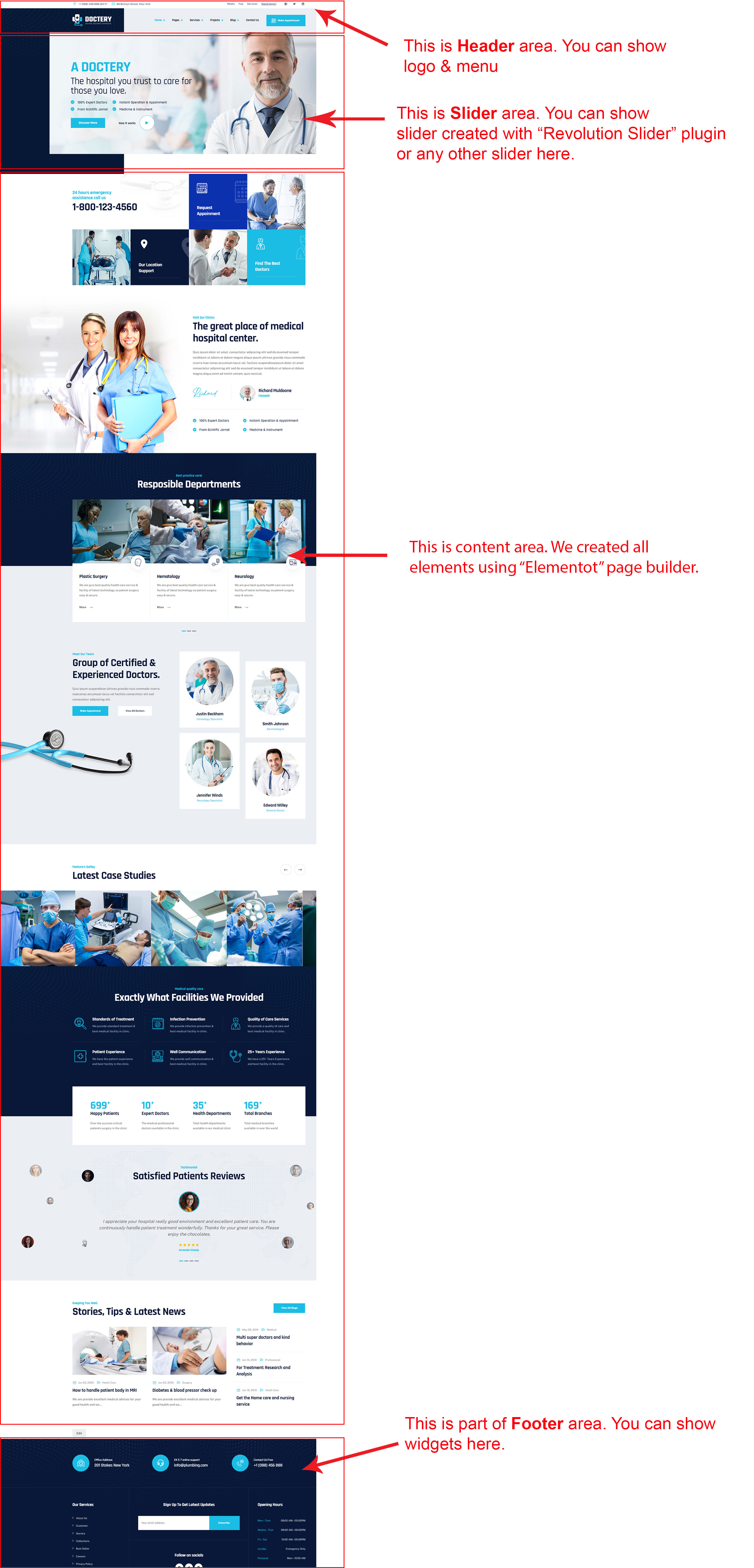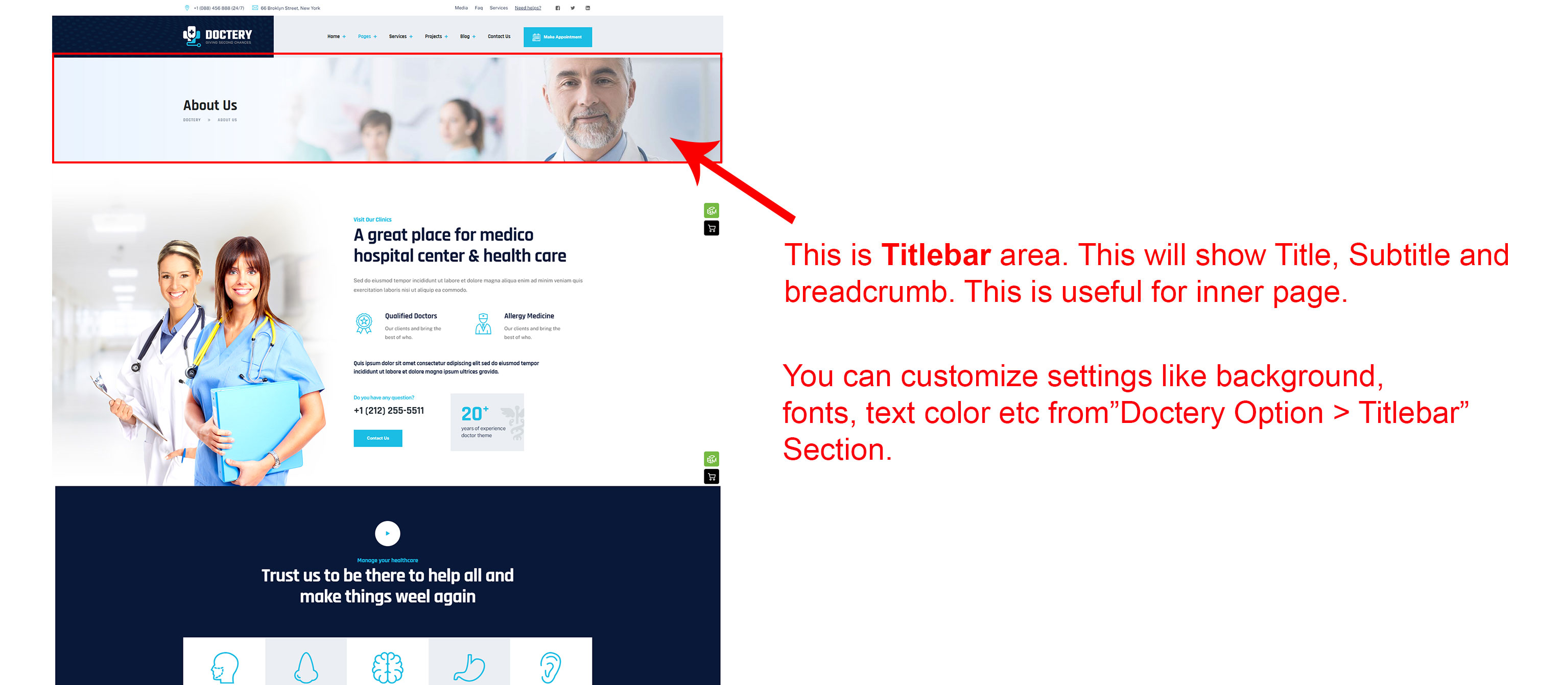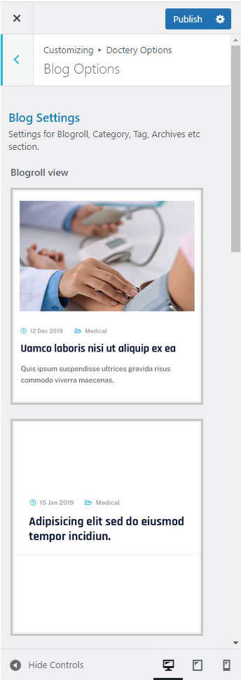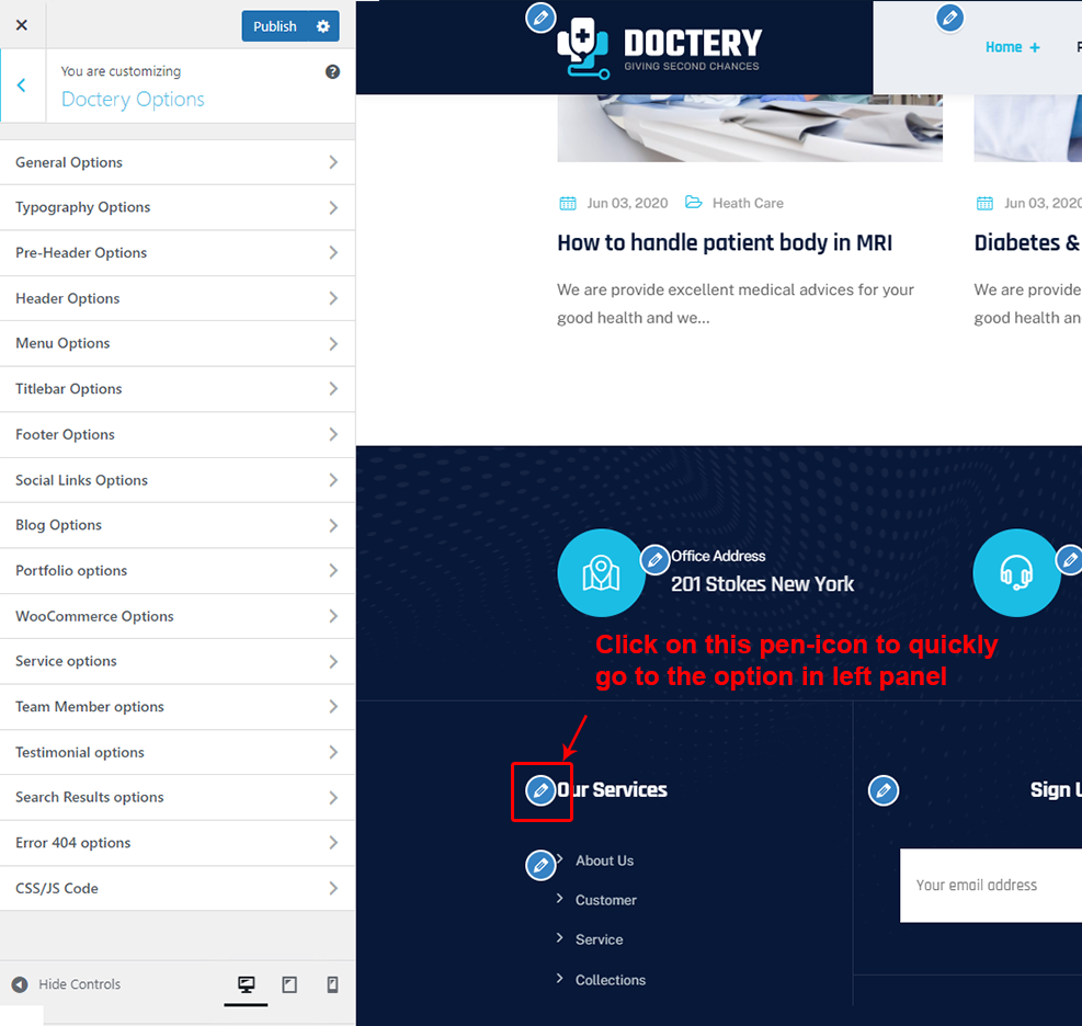 There are different sections in Doctery theme. Here you will find name of each section name so you can find their options easily. You can customize each sections from Doctery Options easily.