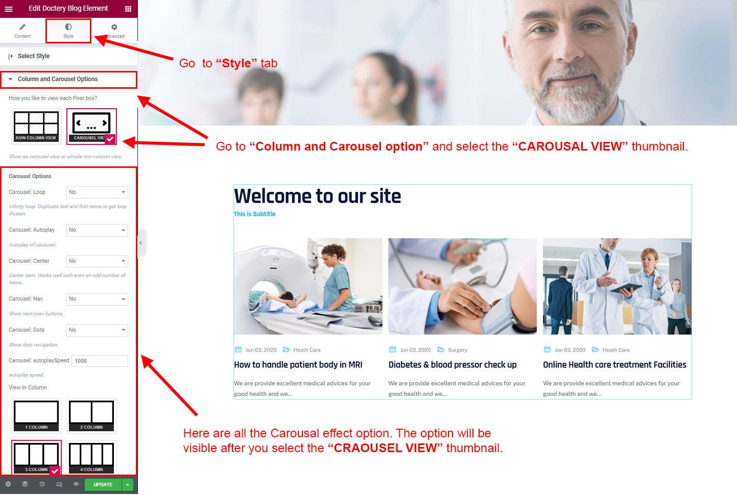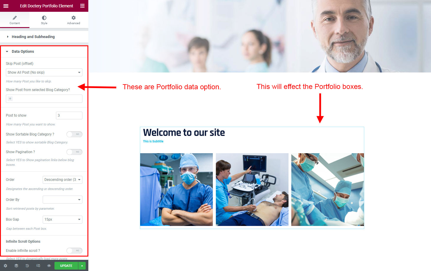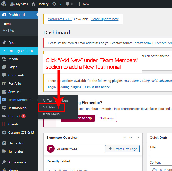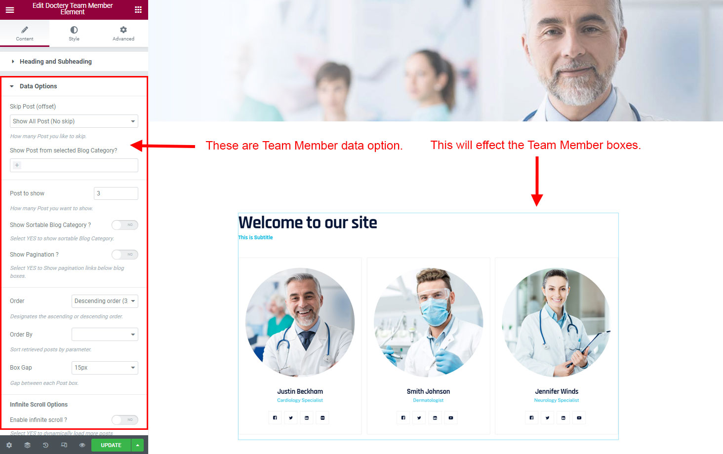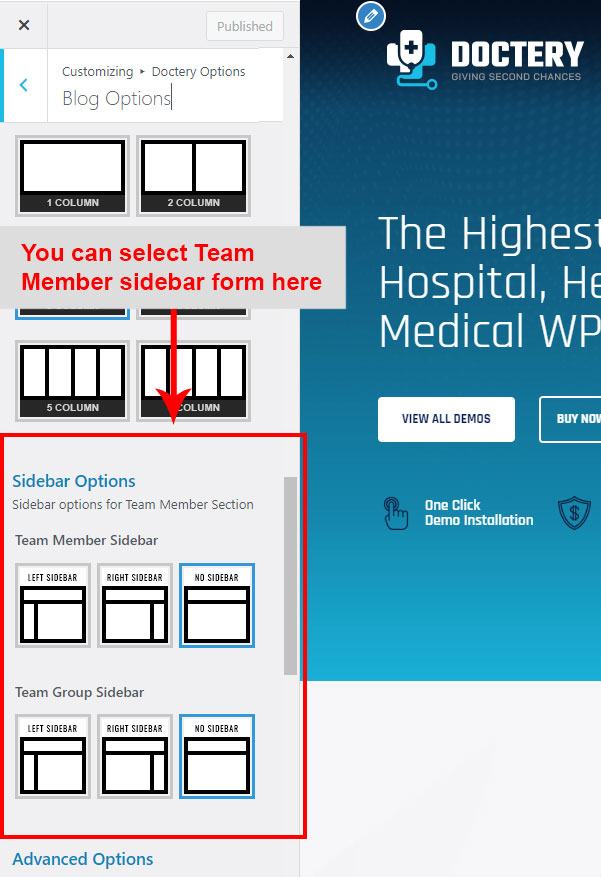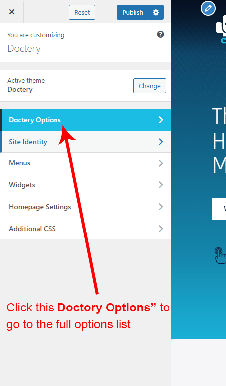 Now click on the Doctery Options and you will see lot's of options for different theme sections.