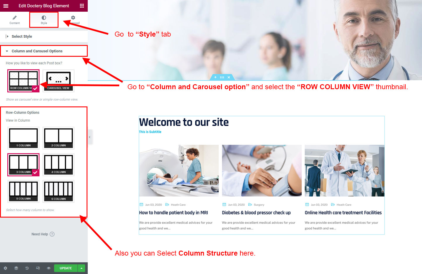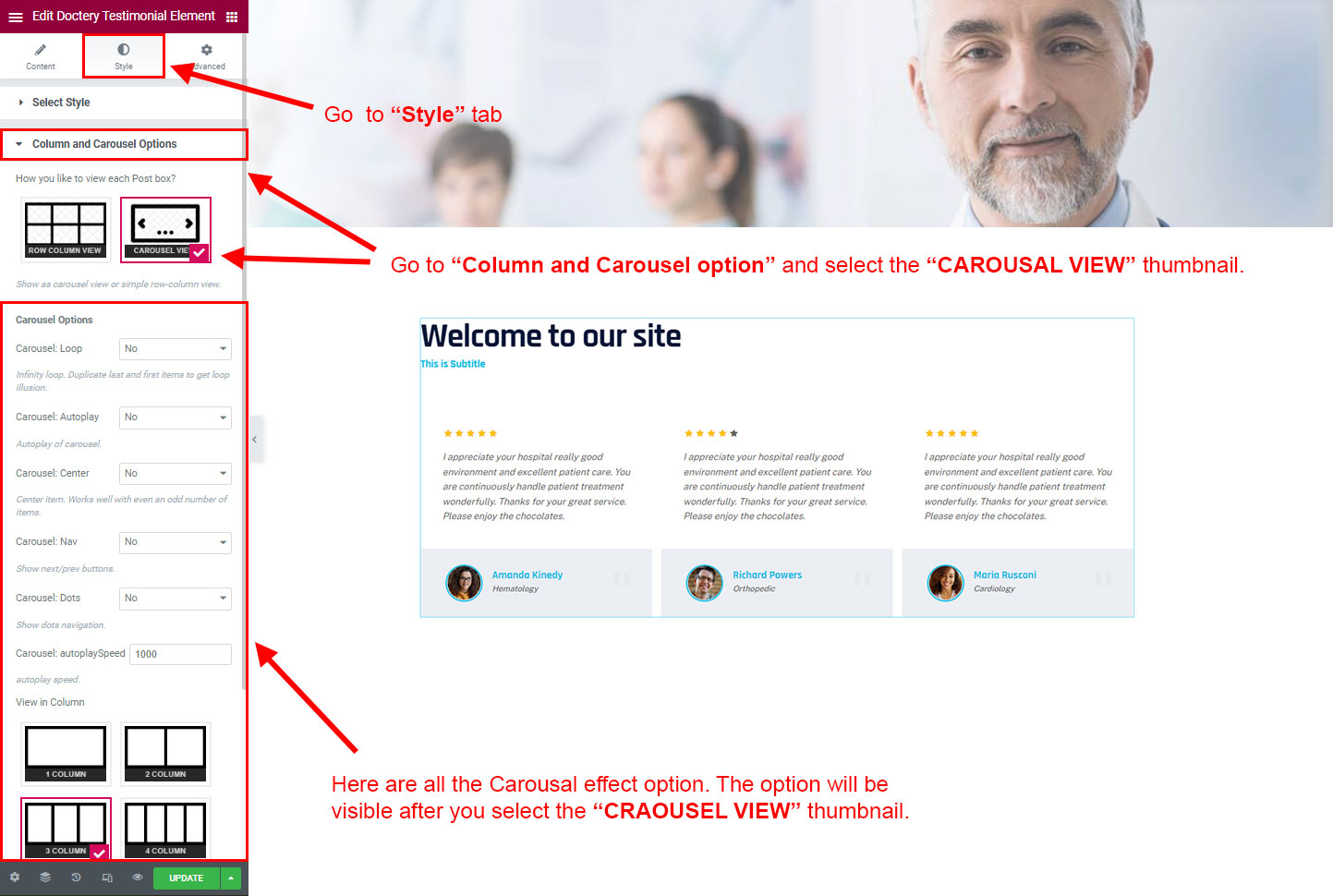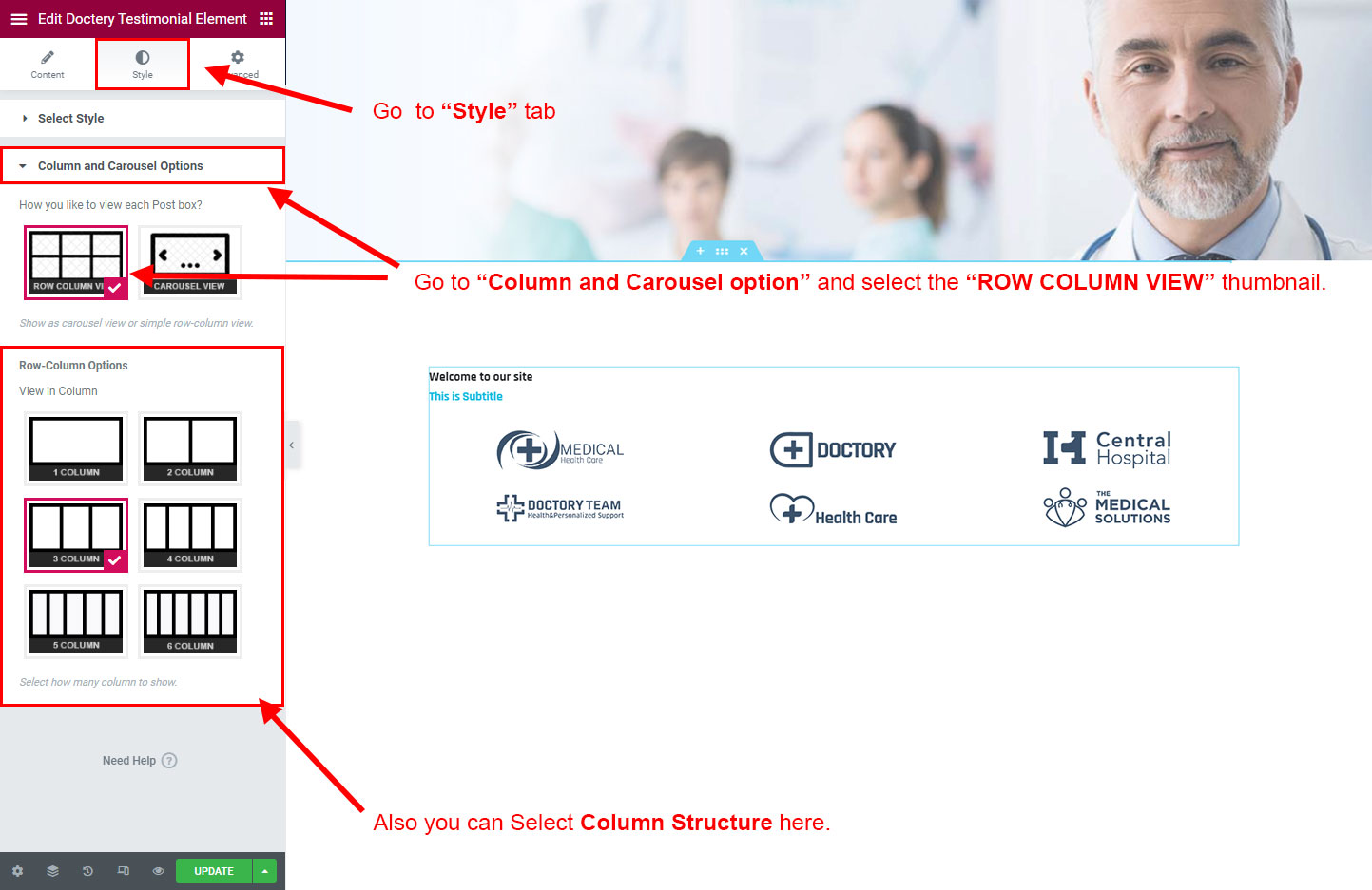 Now click on the Doctery Options and you will see lot's of options for different theme sections.