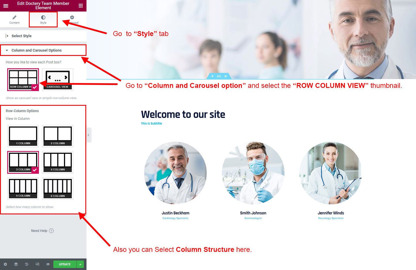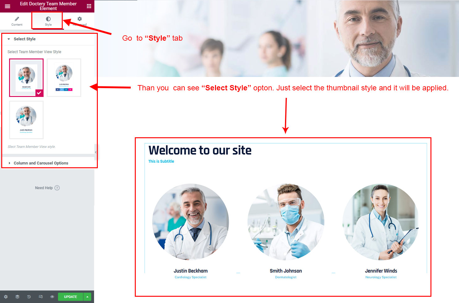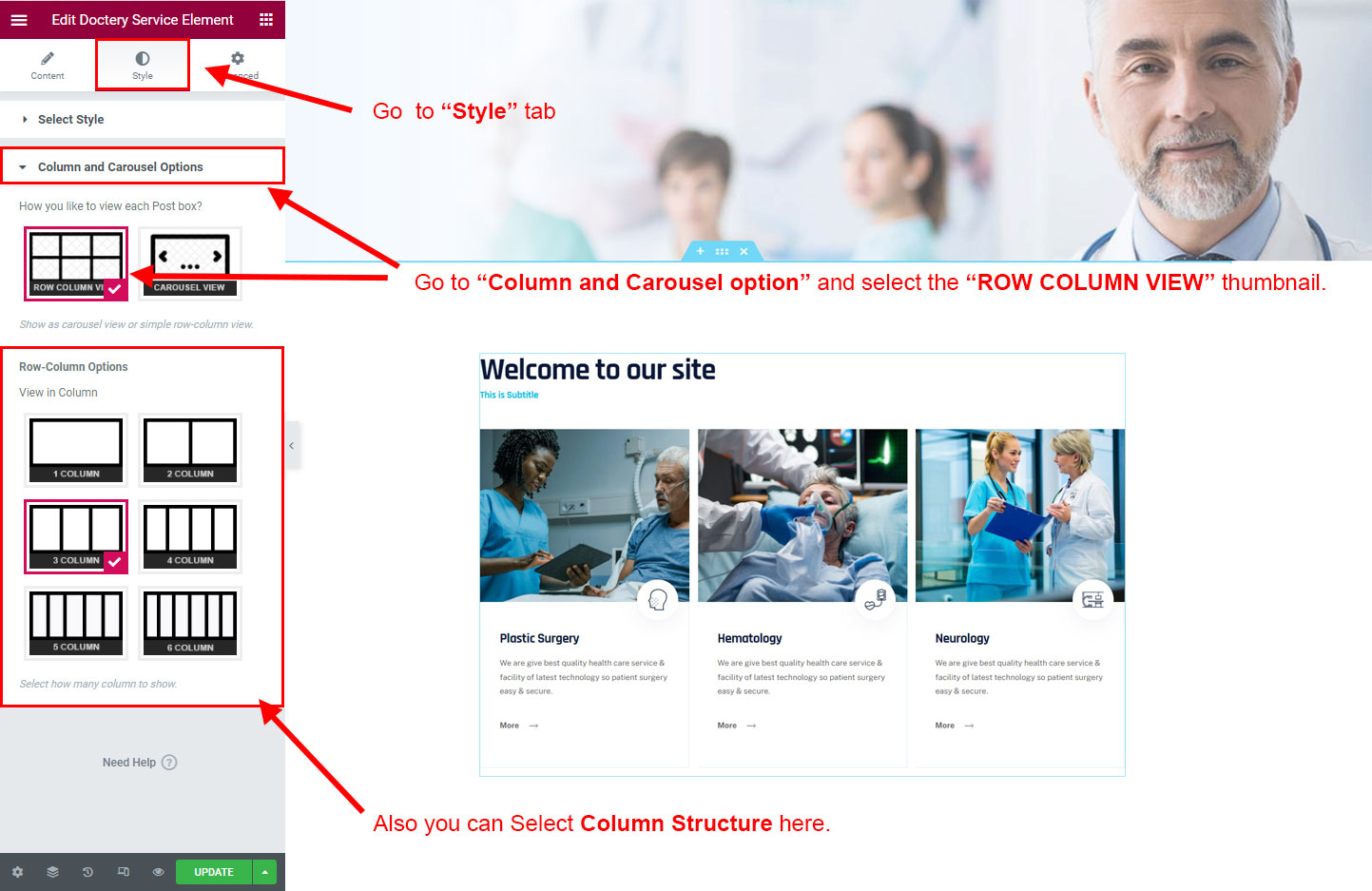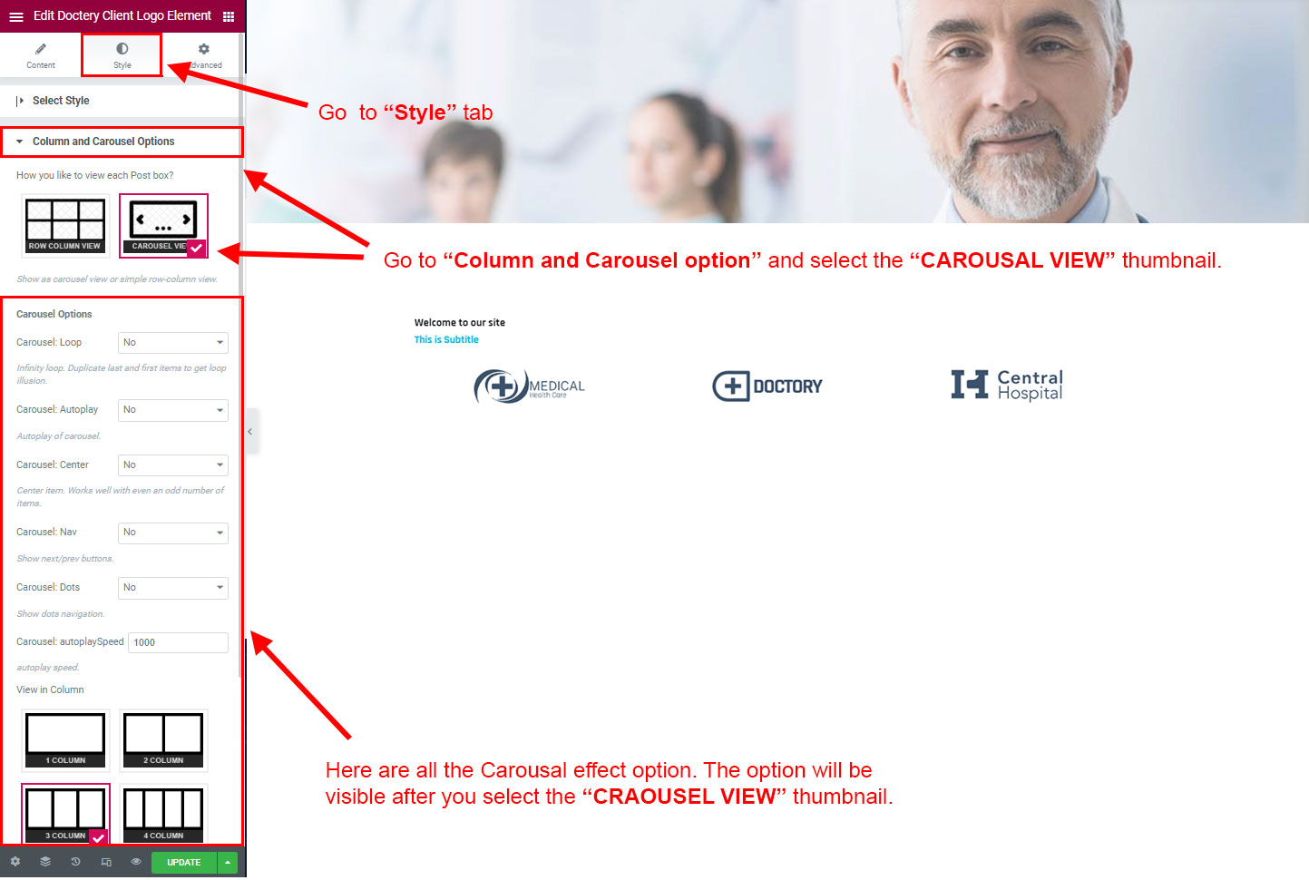 Now click on the Doctery Options and you will see lot's of options for different theme sections.