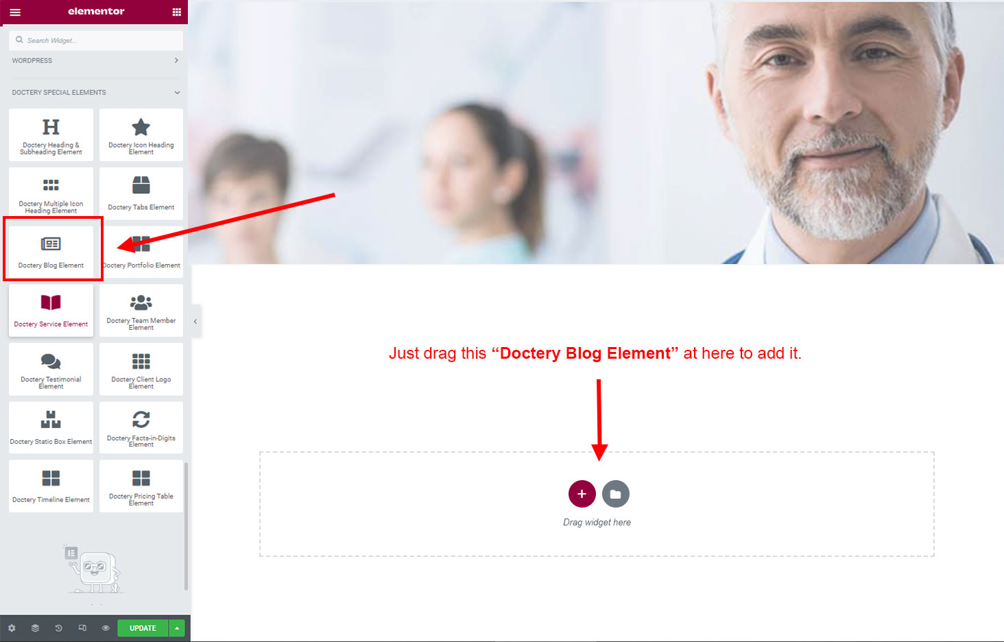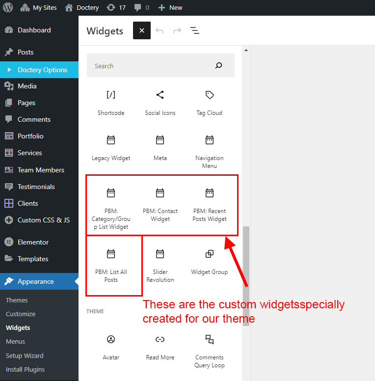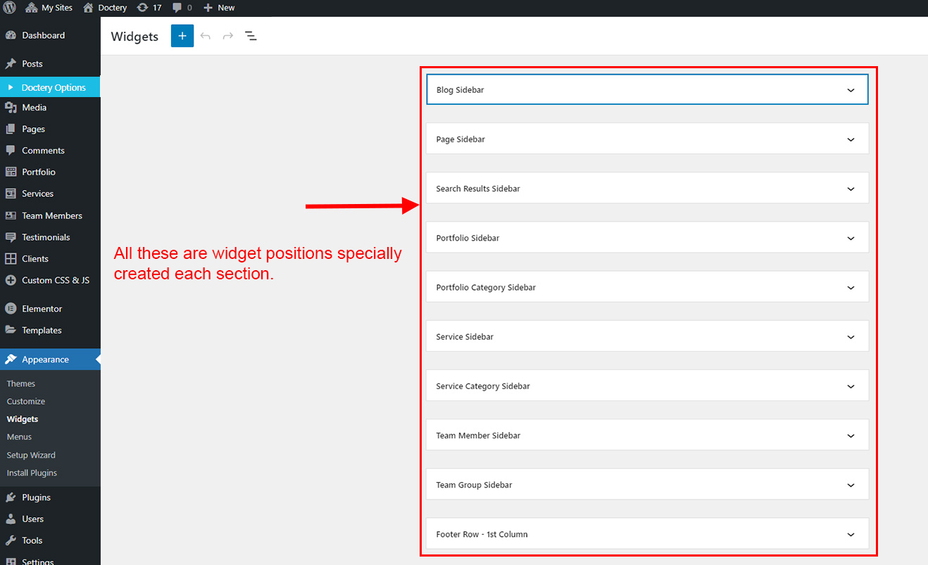 There are some widgets created specially for Doctery theme. Here are the widgets: