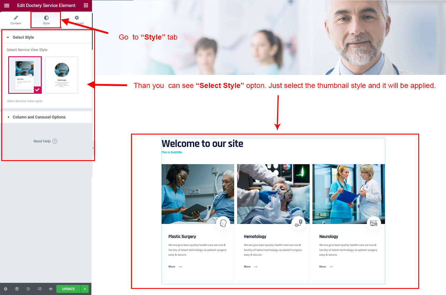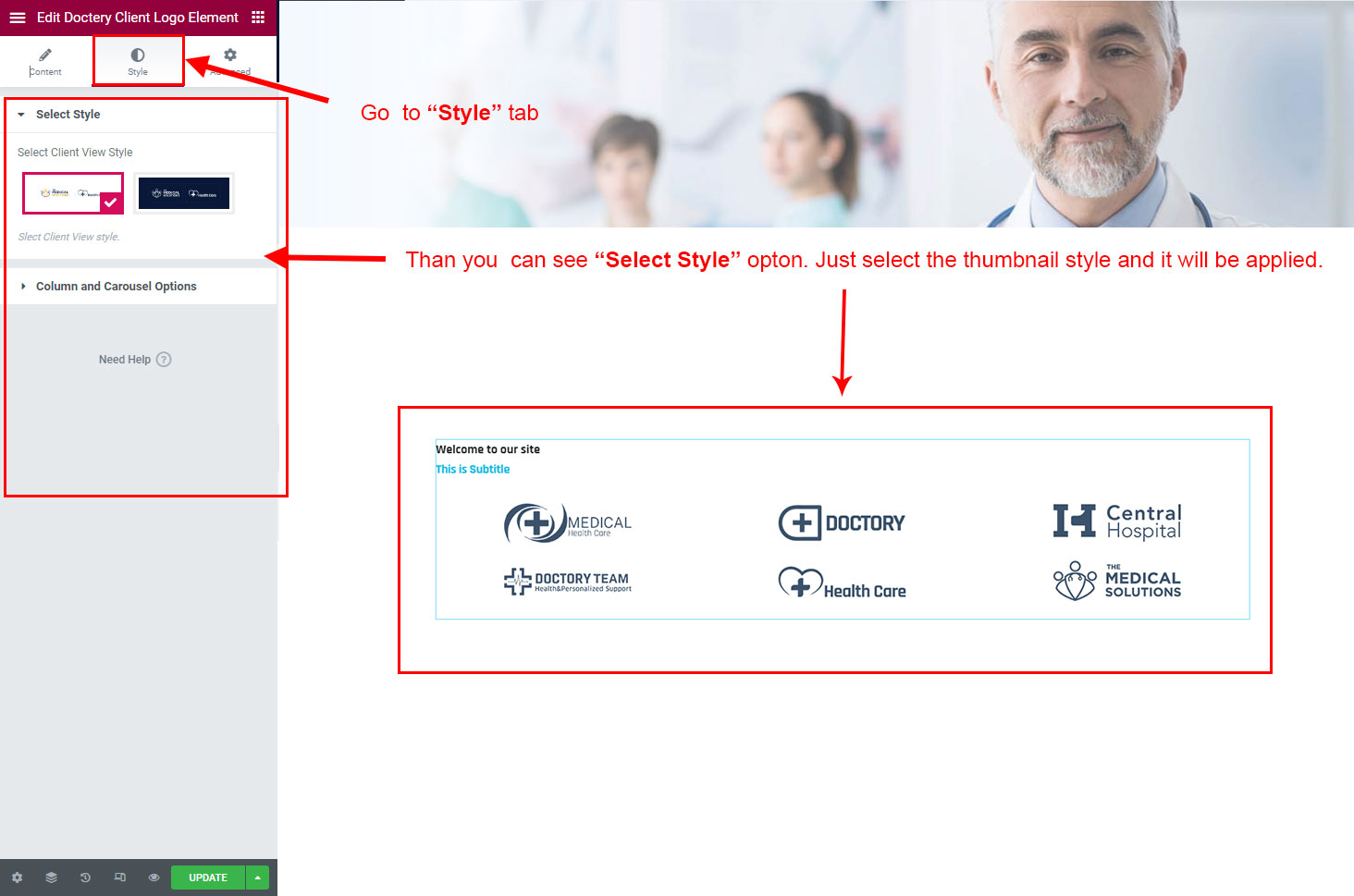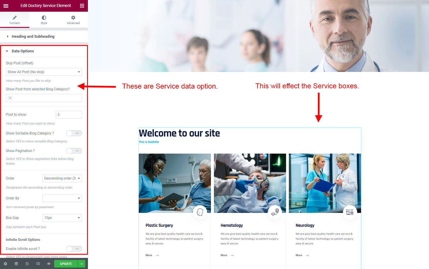 There are some widgets created specially for Doctery theme. Here are the widgets: