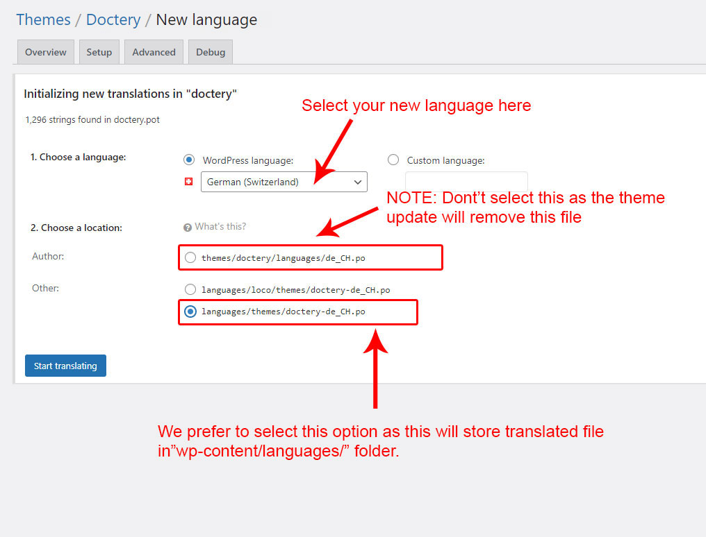 Within this section, you’ll find everything you need to localize and internationalize the Doctery theme into your language. It is split into several subsections to help you easily find what you need. There are different ways for this: