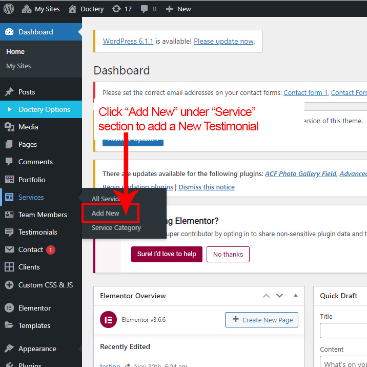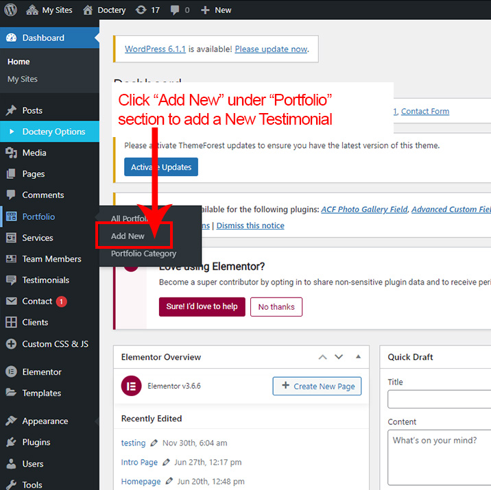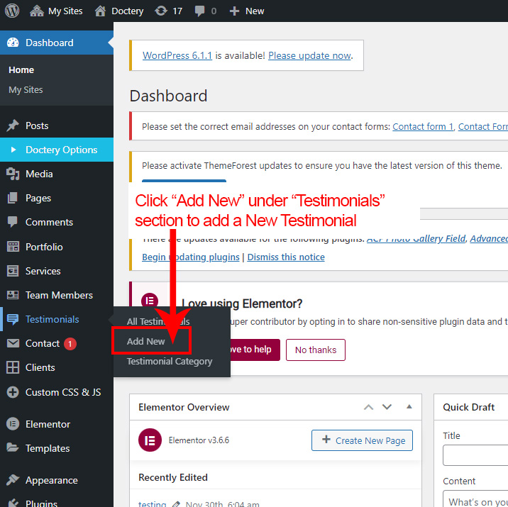 First go to Testimonial >> Add New to create a new Testimonial.